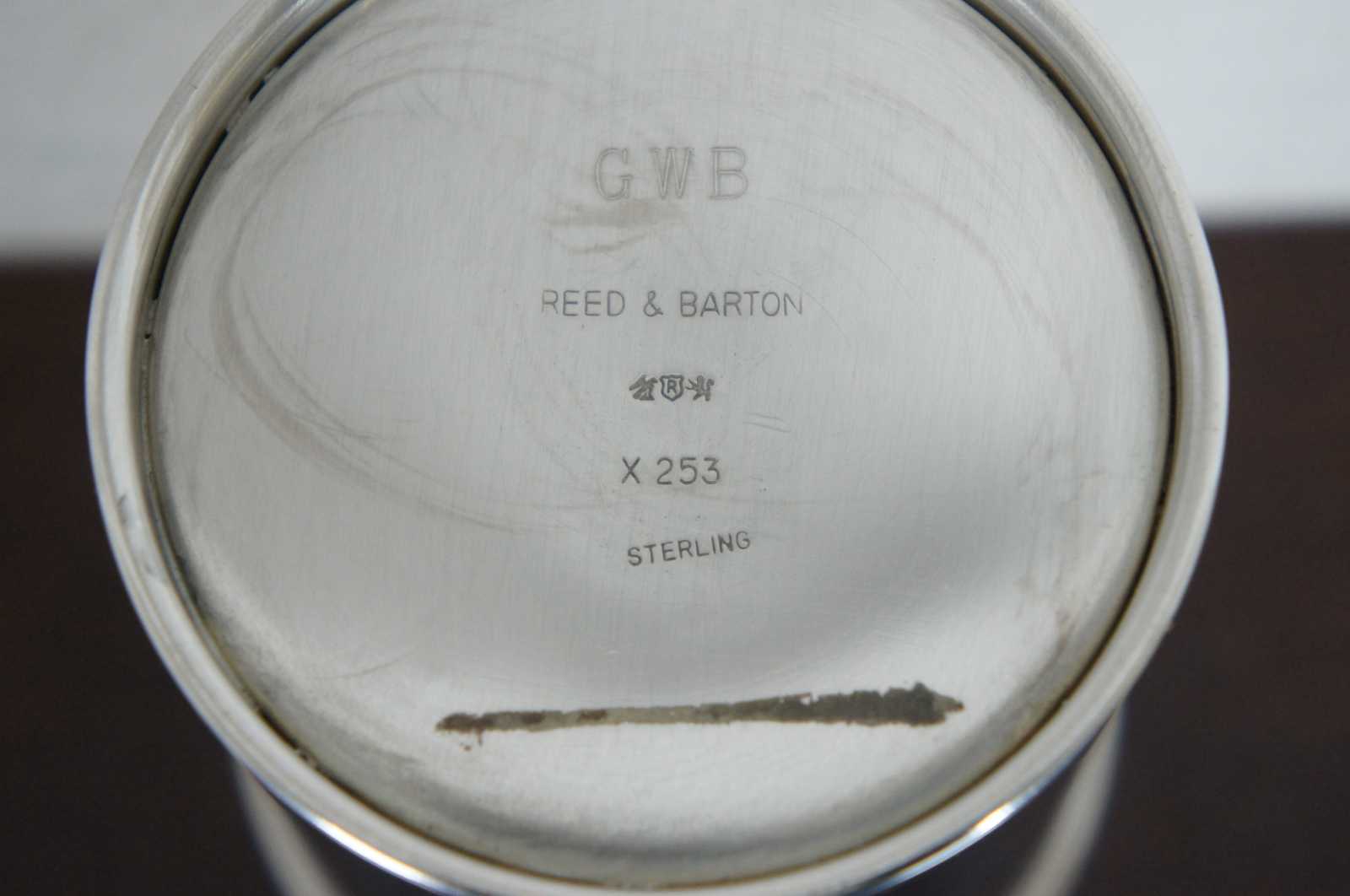 Sterling silver .925 10 ounce mint julip / derby cup. Marked GWB (George Walker Bush - 43rd President) Reed & Barton, x253. Sterling. Monogrammed MNF.