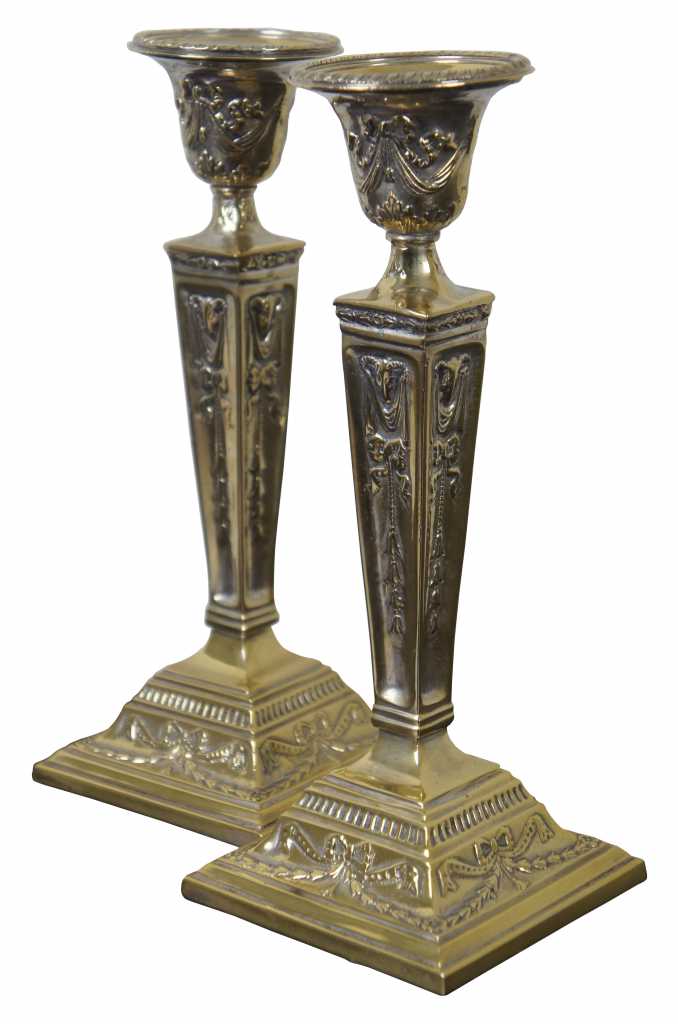 Silverplated candlesticks by International Silver Co. Neoclassical design. Gold plated.