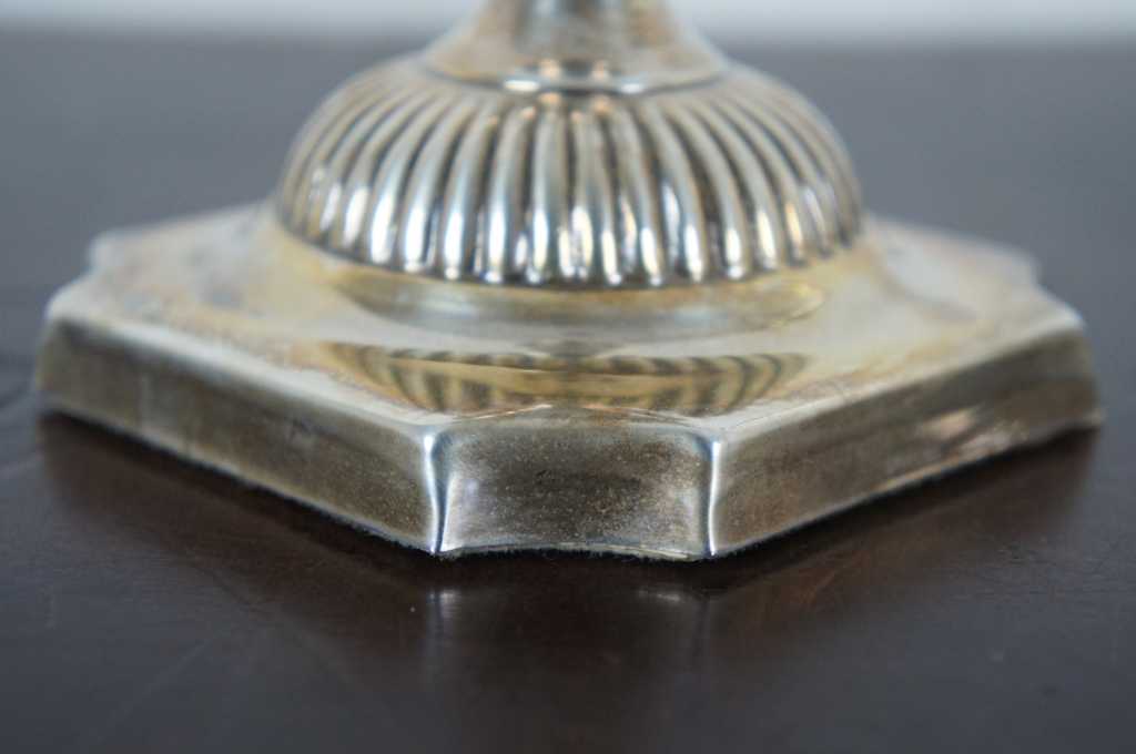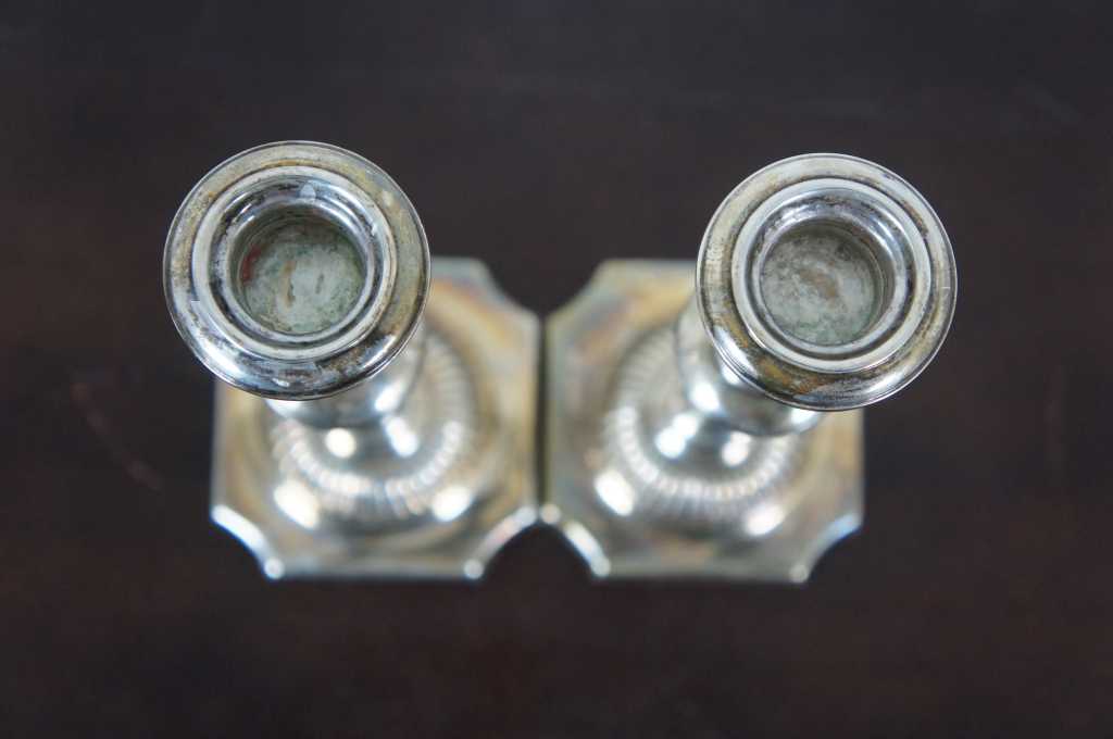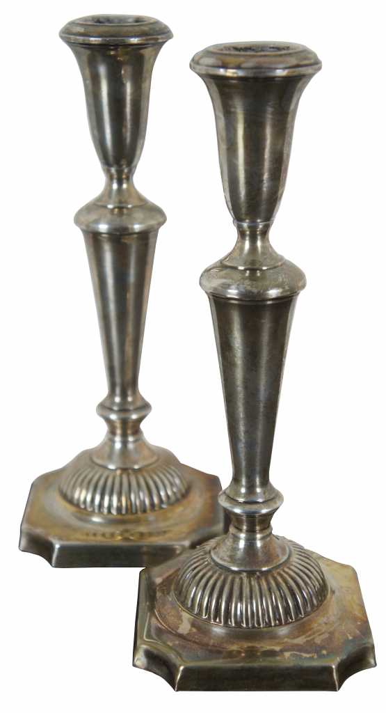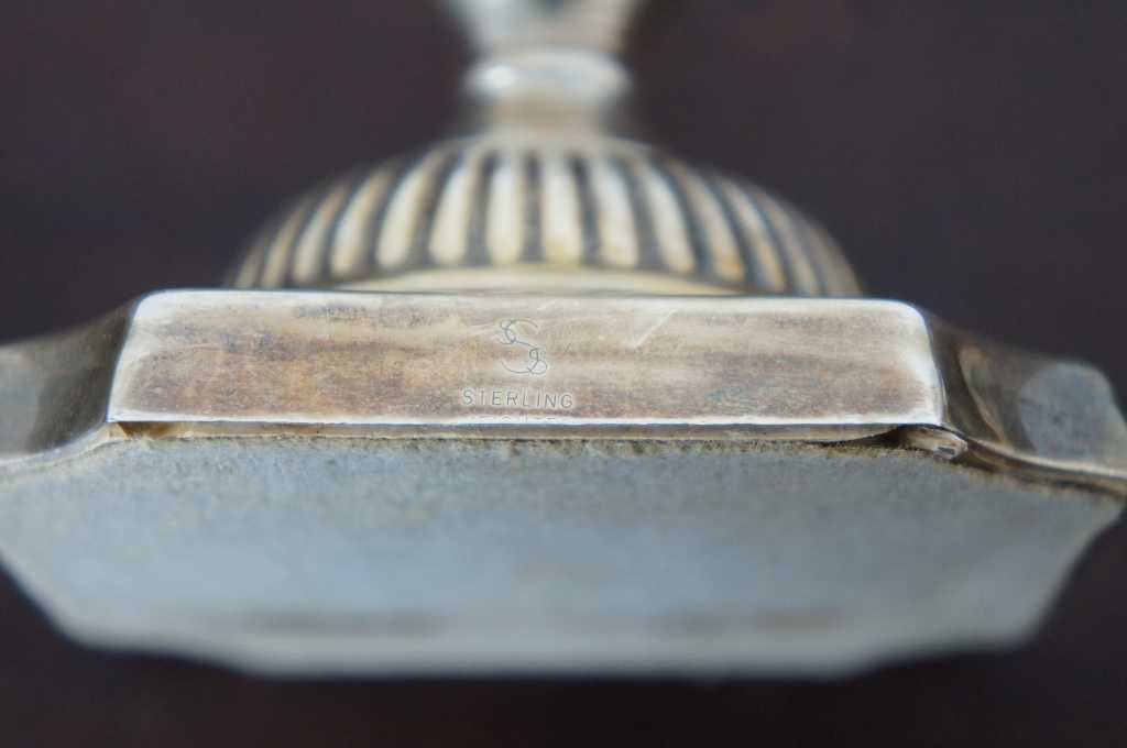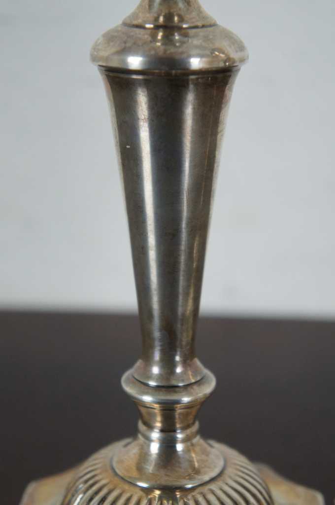 Gorgeous antique pair of sterling silver candlesticks. Feature art deco styling, marked SSS on base.