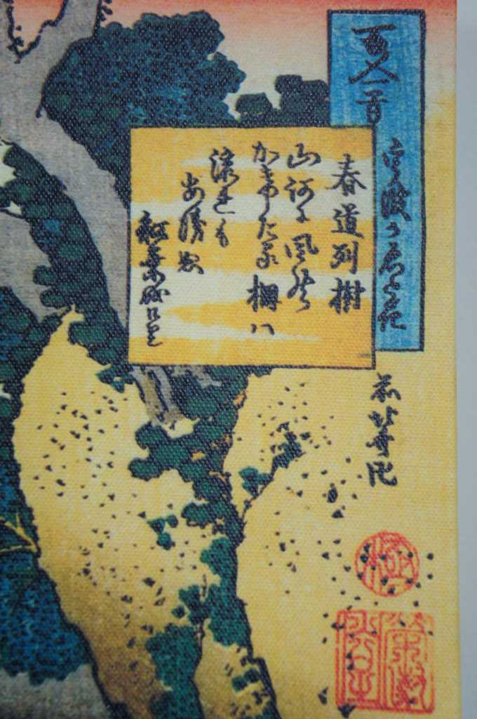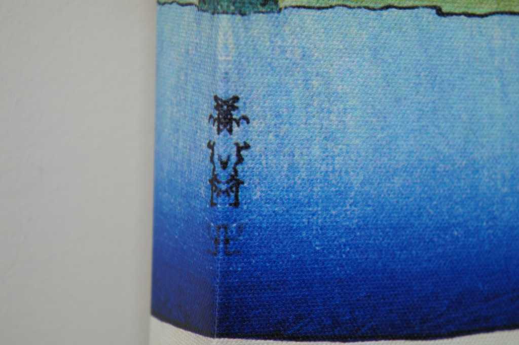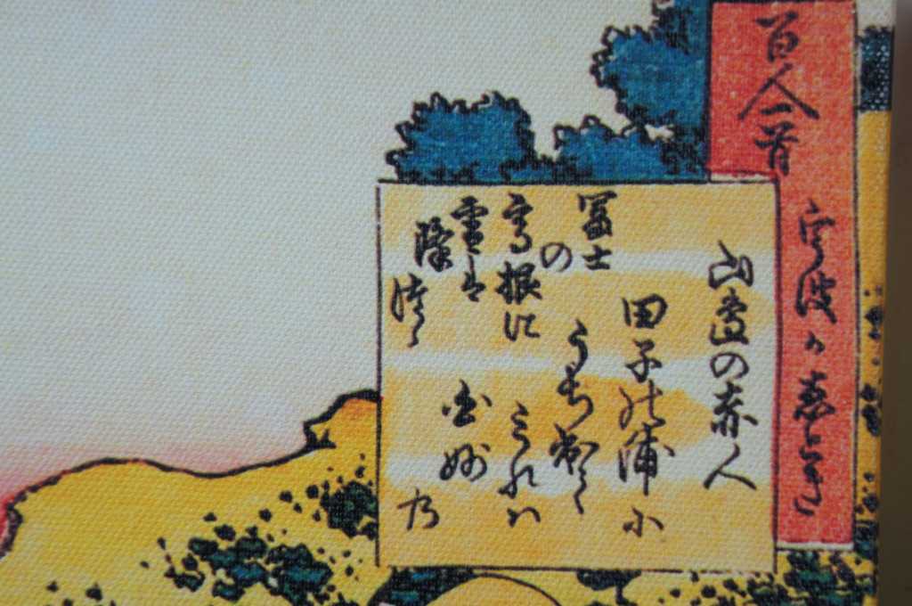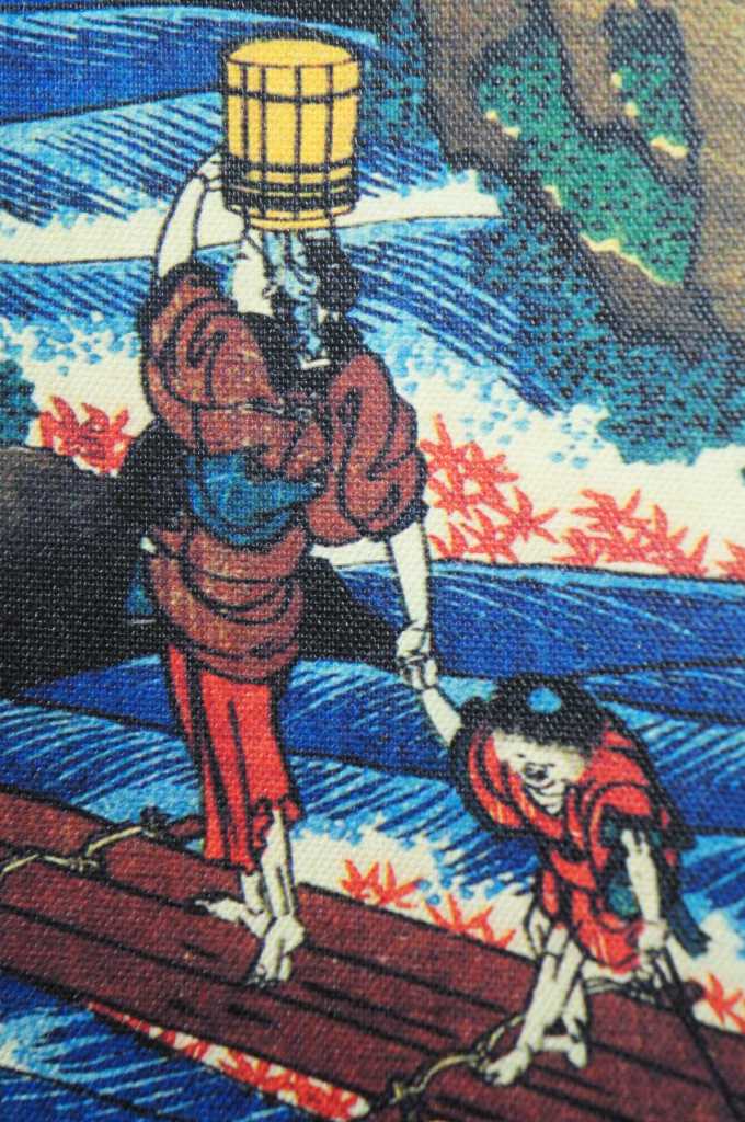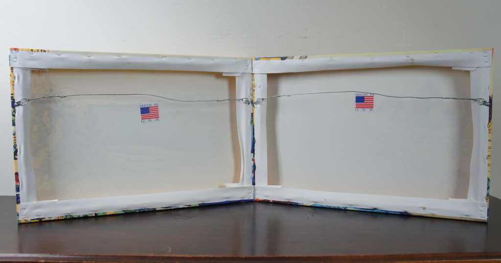 Colorful pair of Japanese style art prints on canvas. Made in USA. Features workers cutting and carrying supplies up mountainside. Mt Fuji can be seen in background.