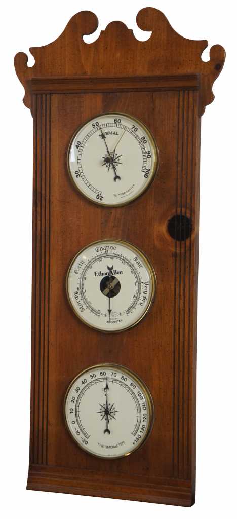 1980s Ethan Allen Barometer Hygrometer Thermometer, Early American Style. Made of Pine.