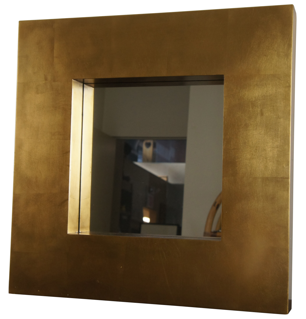 Gold Framed Wall Mirror by Majestic Mirror and Frame Company. Features a beautiful chunky gold square frame.
