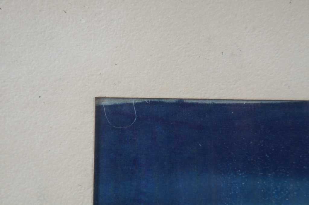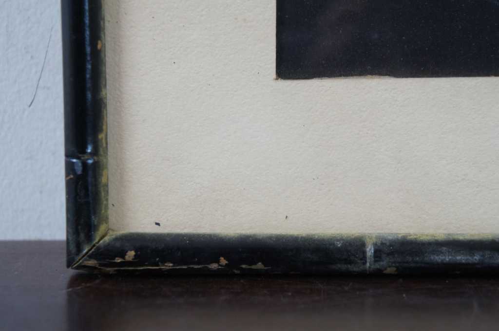 Very Good - Wear to frame; discolored mat; some faint spots on fabric; see pictures
