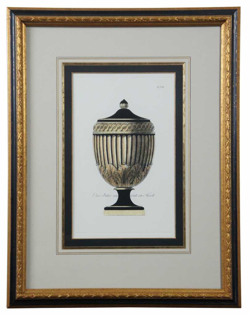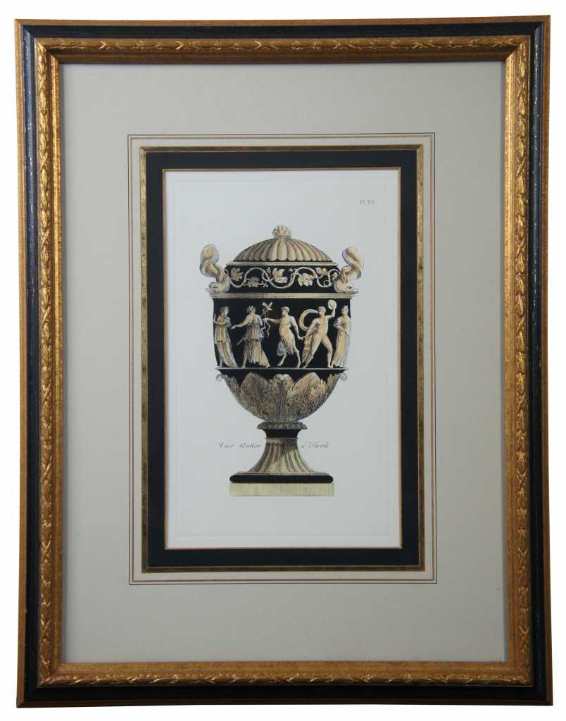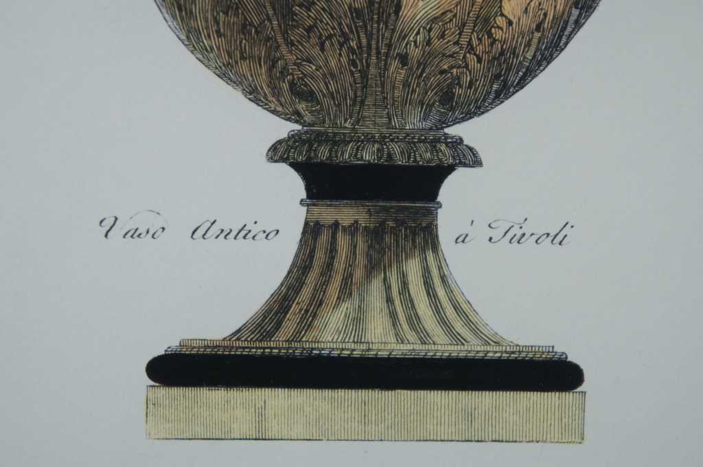 Classical etruscan urns on pedestal. Engravings after Giovanni Battista by Henry Moses. Featuring ornate urns, with acanthus, figural, delphin designs.