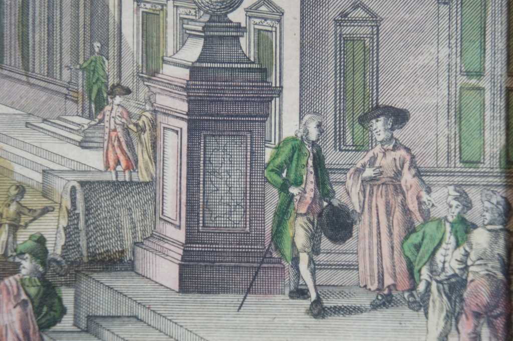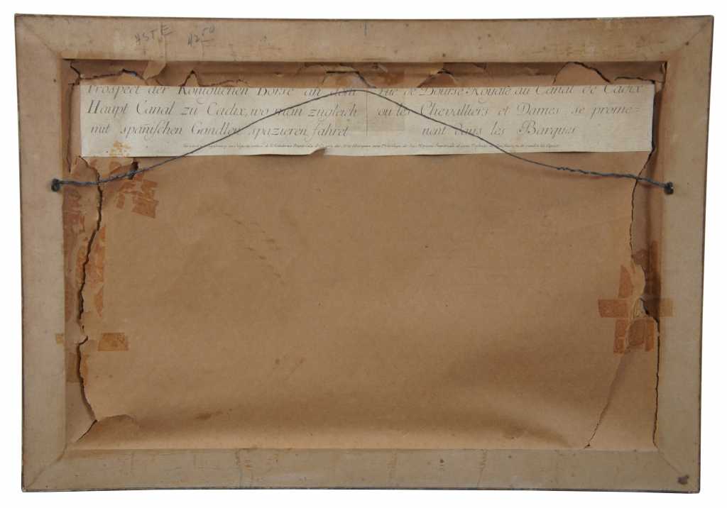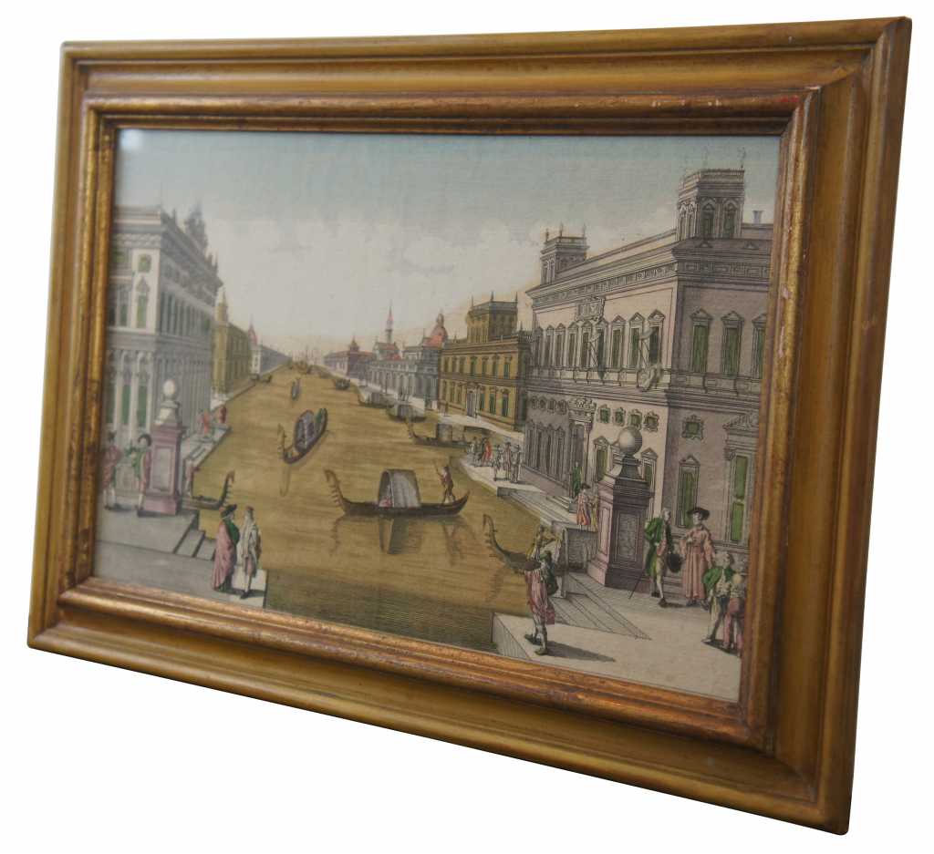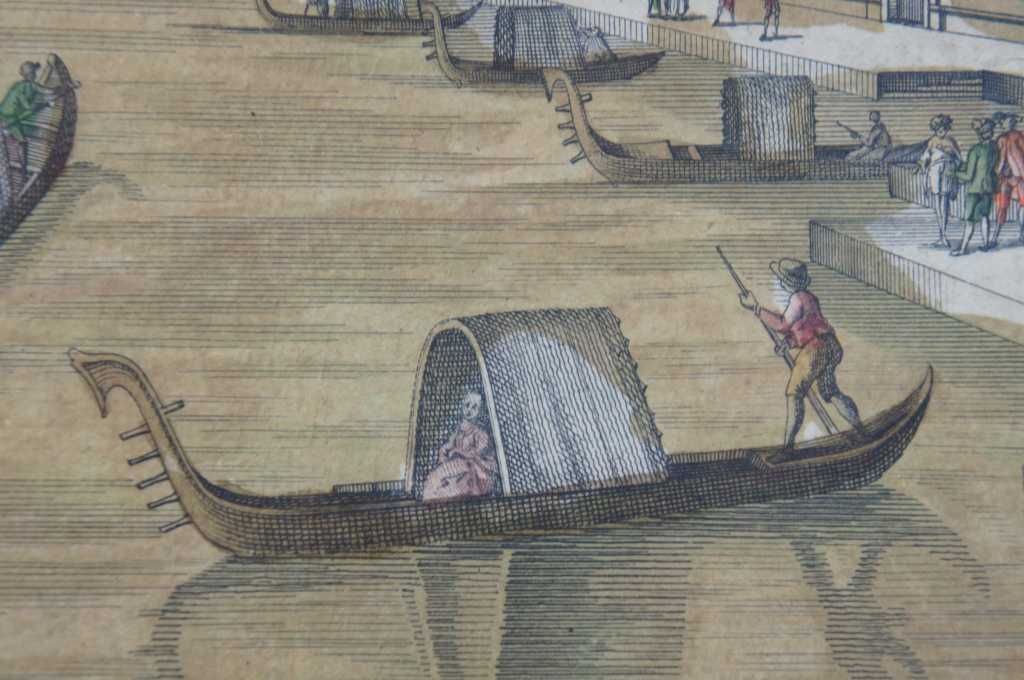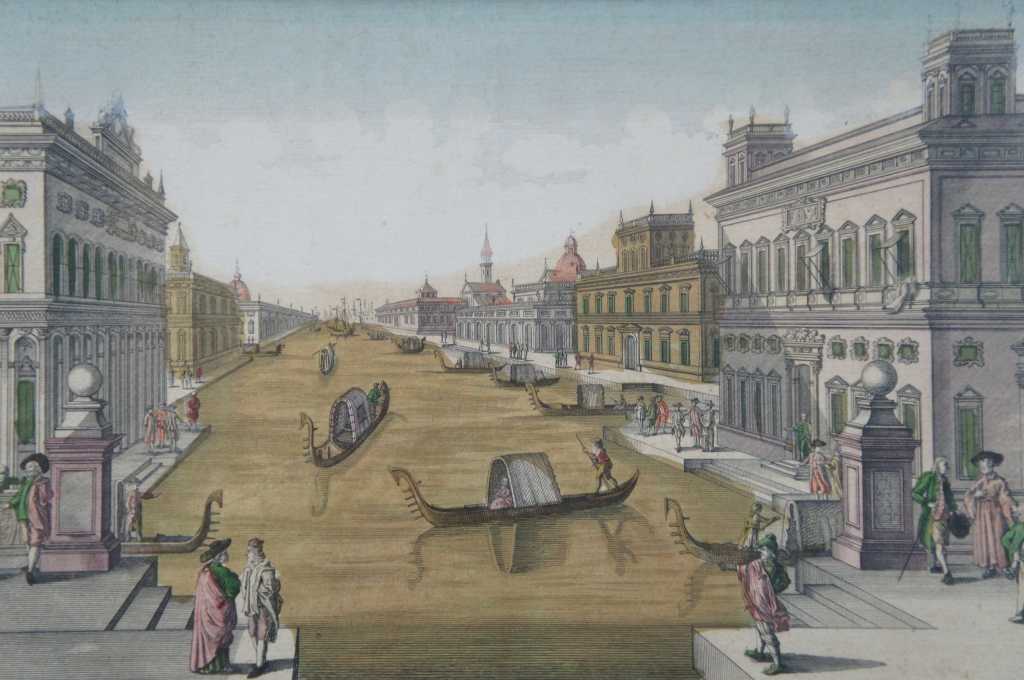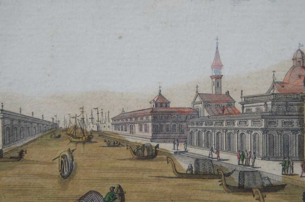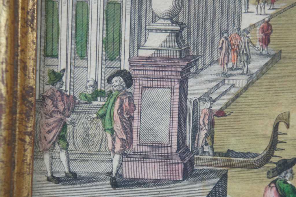 Antique hand colored engraving of the grand canal in Venice. Original description was cut off and attached to the back.