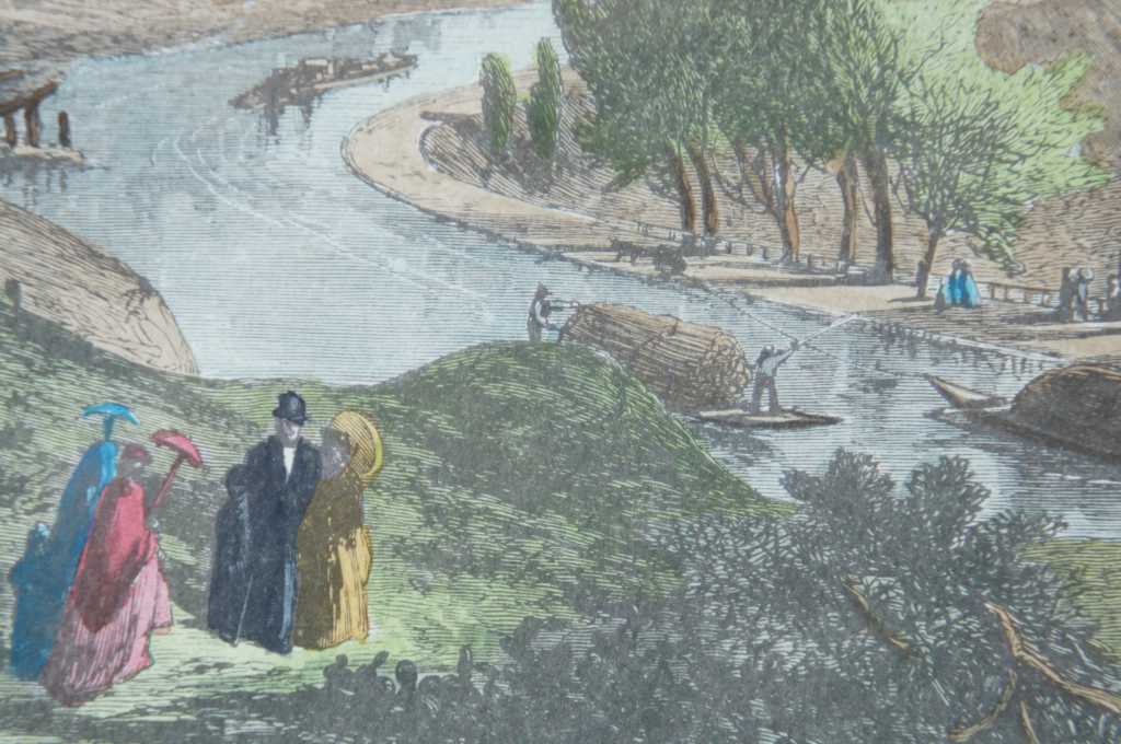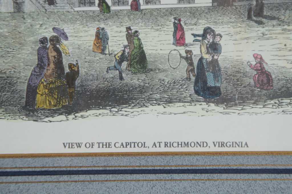 View of the Capitol" at Richmond Virgina portrays the early republic and palladian style architecture of the Virginia State capitol building. "Richmond, Virginia", originally produced in 1870. Features, the James River from Hollywood Virginia. Orig. engraved by Harry Fenn