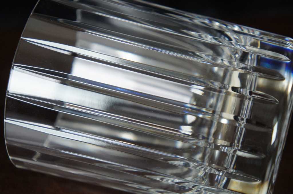 Baccarat Decanter & Glasses, Exquisit. This limited edition Baccarat Crystal Harmonie Round Whiskey Crystal Decanter and DOF set has a trim, streamlined silhouette. Consecutive parallel lines travel cleanly along the form, subtly grazing the clear crystal from its base to its shoulder. The perfect drink set.