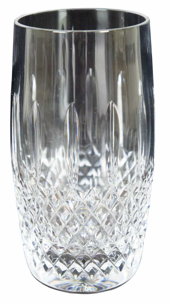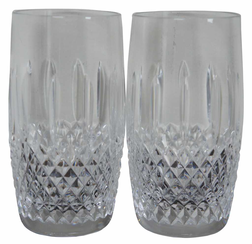 2 Waterford highball glasses in the Glenmede pattern. Features a cross hatch and vertical cut.