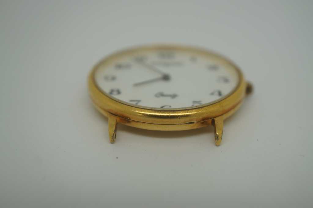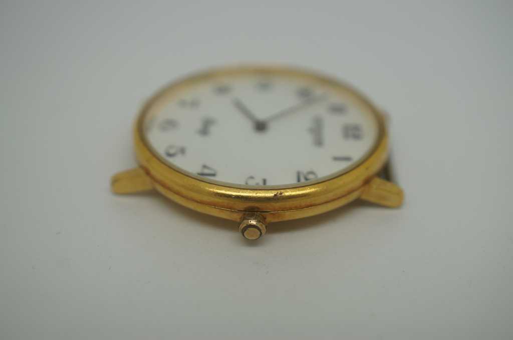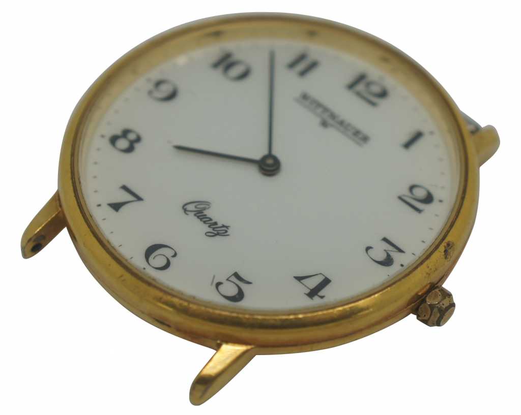 Mid century Wittnauer quartz watch face, Marked swiss on watch face and West Germany on back plate. Wittnauer was purchased by Longines in 1950. Features Caro 404 Movement, one jule.