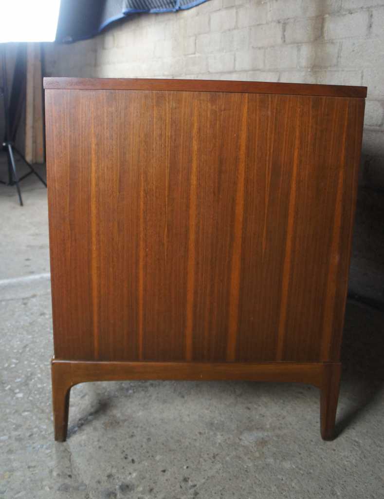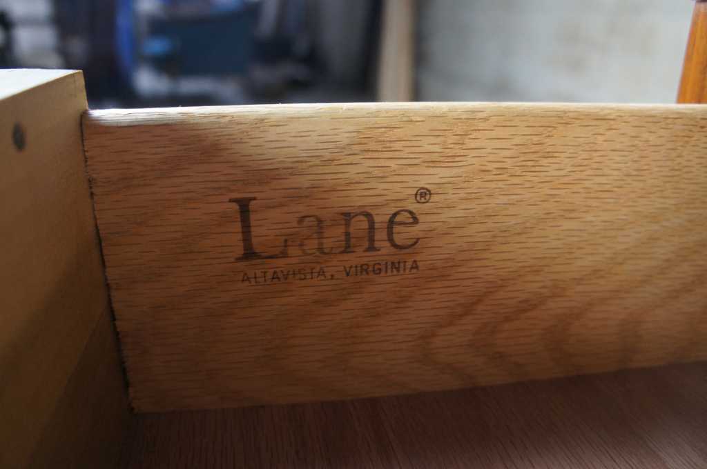 This desk was made on July 3rd 1965 by Lane Furniture in Altavista Virginia. Part of the Rhythm collection with Paul McCobb styling. Features a kneehole, six drawers, one with file storage.