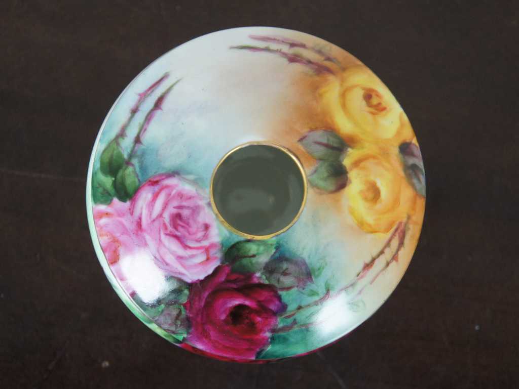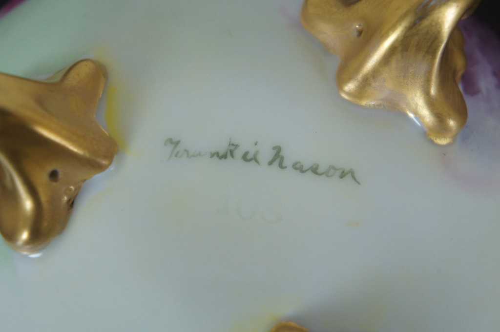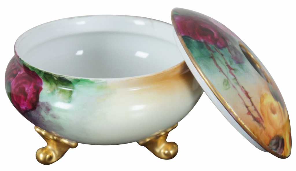 Vintage Vienna Austira footed and lidded powder bowl or hair catcher. Hand painted by what appears to read Frankie Mason.