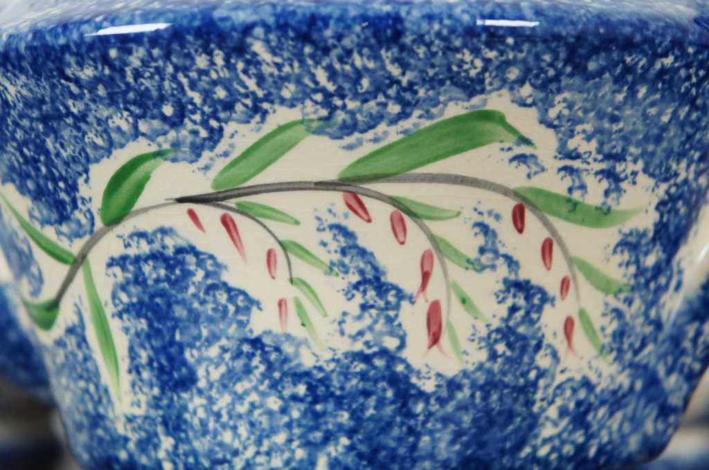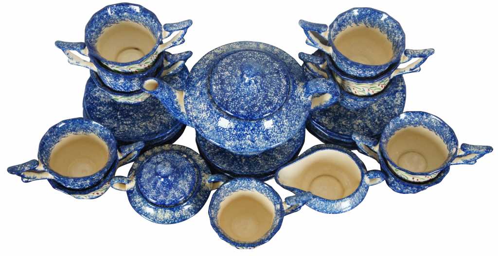 Splatterware pottery originated in the 1700's and was usually decorated by children. It is one of the few products considered true American Folk Art. This charming pottery is handmade by Molly Dallas with the same traditional techniques. Each piece is Hand painted and Original, no two pieces are ever alike.