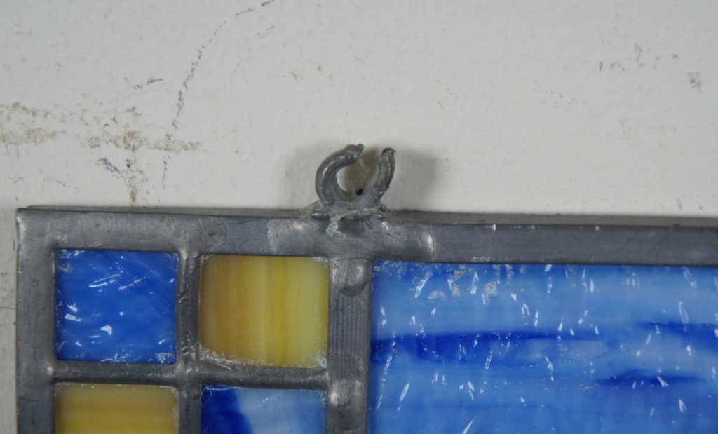Blue and yellow leaded stained glass window panel.