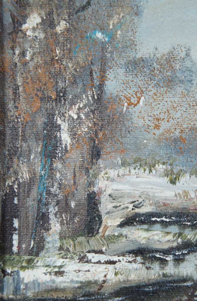 Original Woodland Oil Landscape Signed Allen Winter Canvas Cabin Woods Stream