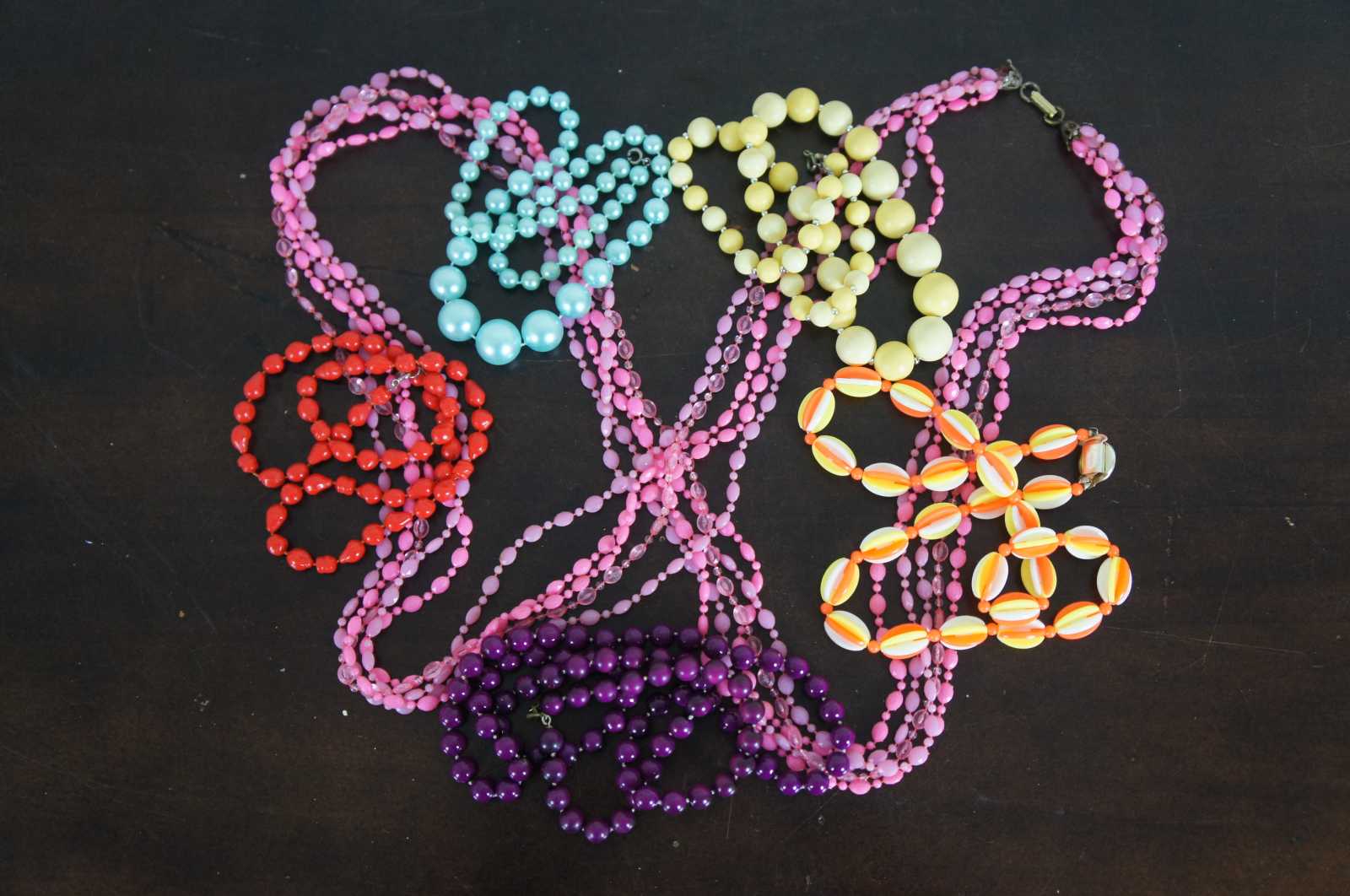Vintage costume jewelry lot, featuring a colorful assortment of retro and vintage styles. 18 in total.