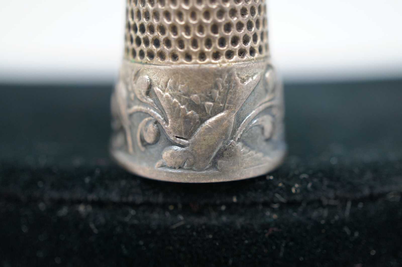Antique Sterling Silver .925 timble made by the Waite, Thresher Co in the late 19th century. Features a star and a thimble. Waite, Thresher Co was founded in Providence, Rhode island, 1884 - 1928. Manufactureres of silver and gold thimbles. Originally founded by Daniel Waite in 1860 as DW Waite & Co. Henry Thresher became a partner in 1884. Simons Brothers acquired their deisngs when the firm disolved. First mark was a star, the thimble in its interior was added later. Successor to the Waite, Smith & Co.