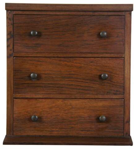 Early american style walnut table top dresser. Perfect storage for jewelry or accessories. A nice addition to any dressing table or desk.