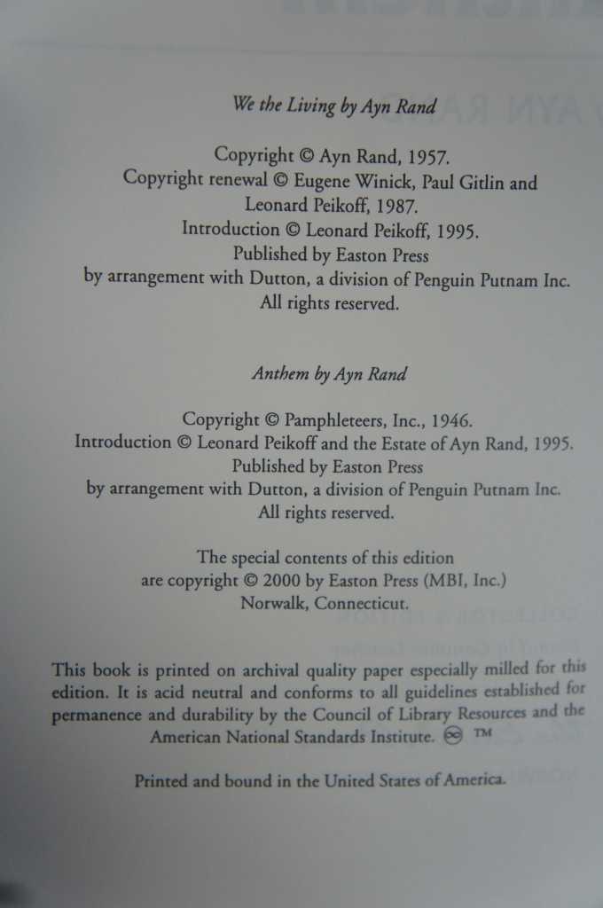 Easton Press - We the Living & Anthem - Ayn Rand – 2000