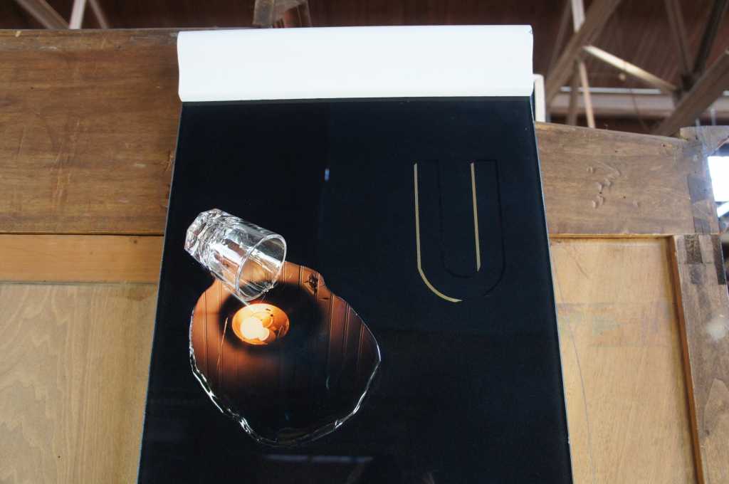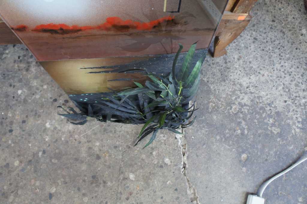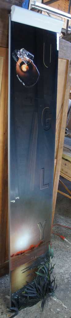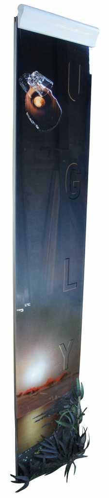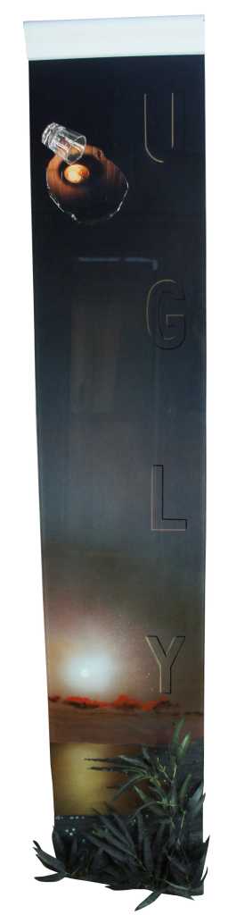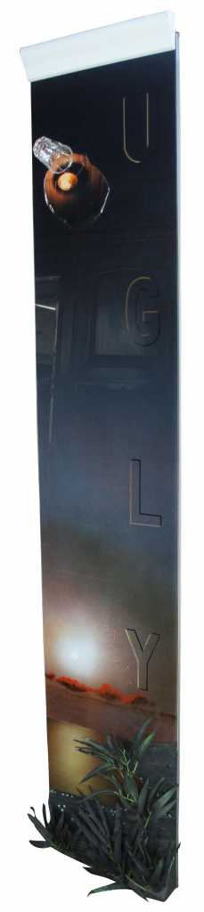 Ugly by Dike Blair, b.1952 USA. Made in 1987, Resin over digital print, glass, painted wood and fake foliage