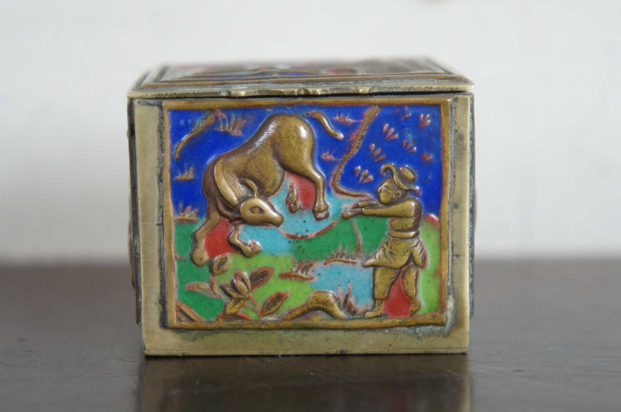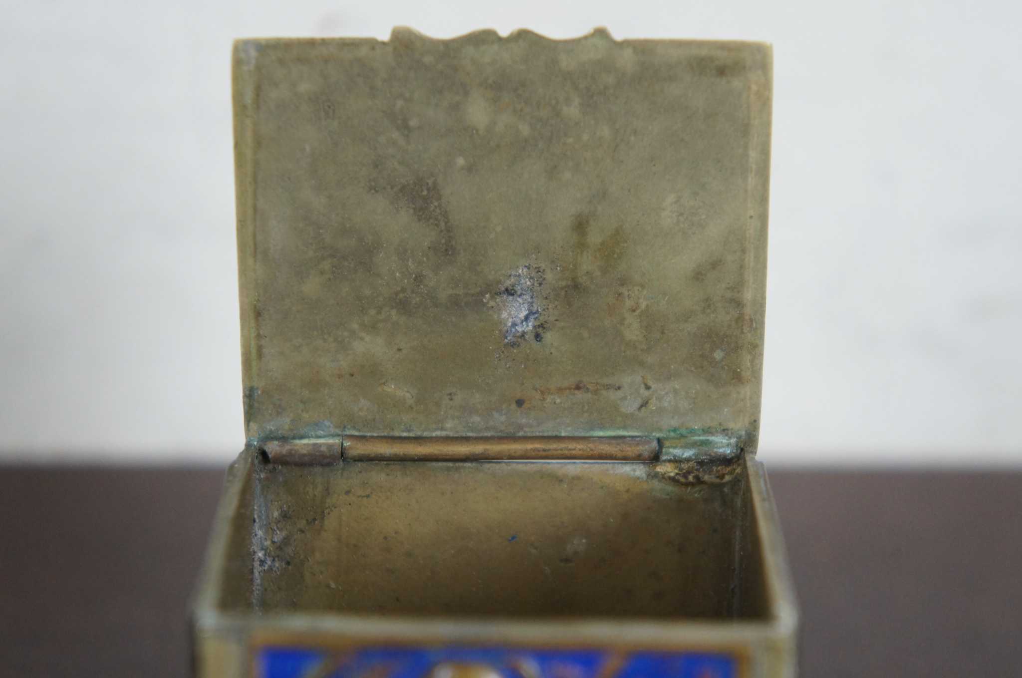 Chinese Vintage Cloisonne Enameled Brass Postage Rolled Stamp Dispenser Trinket Box