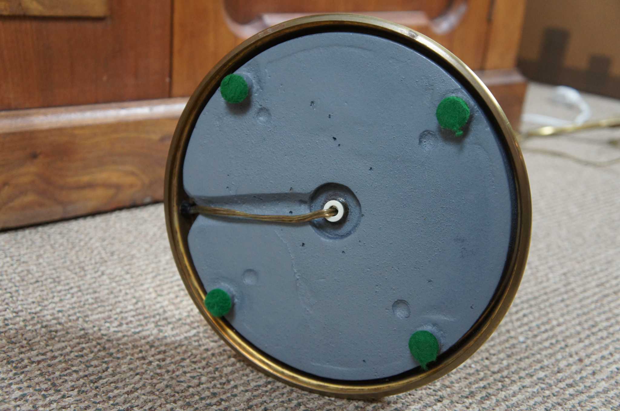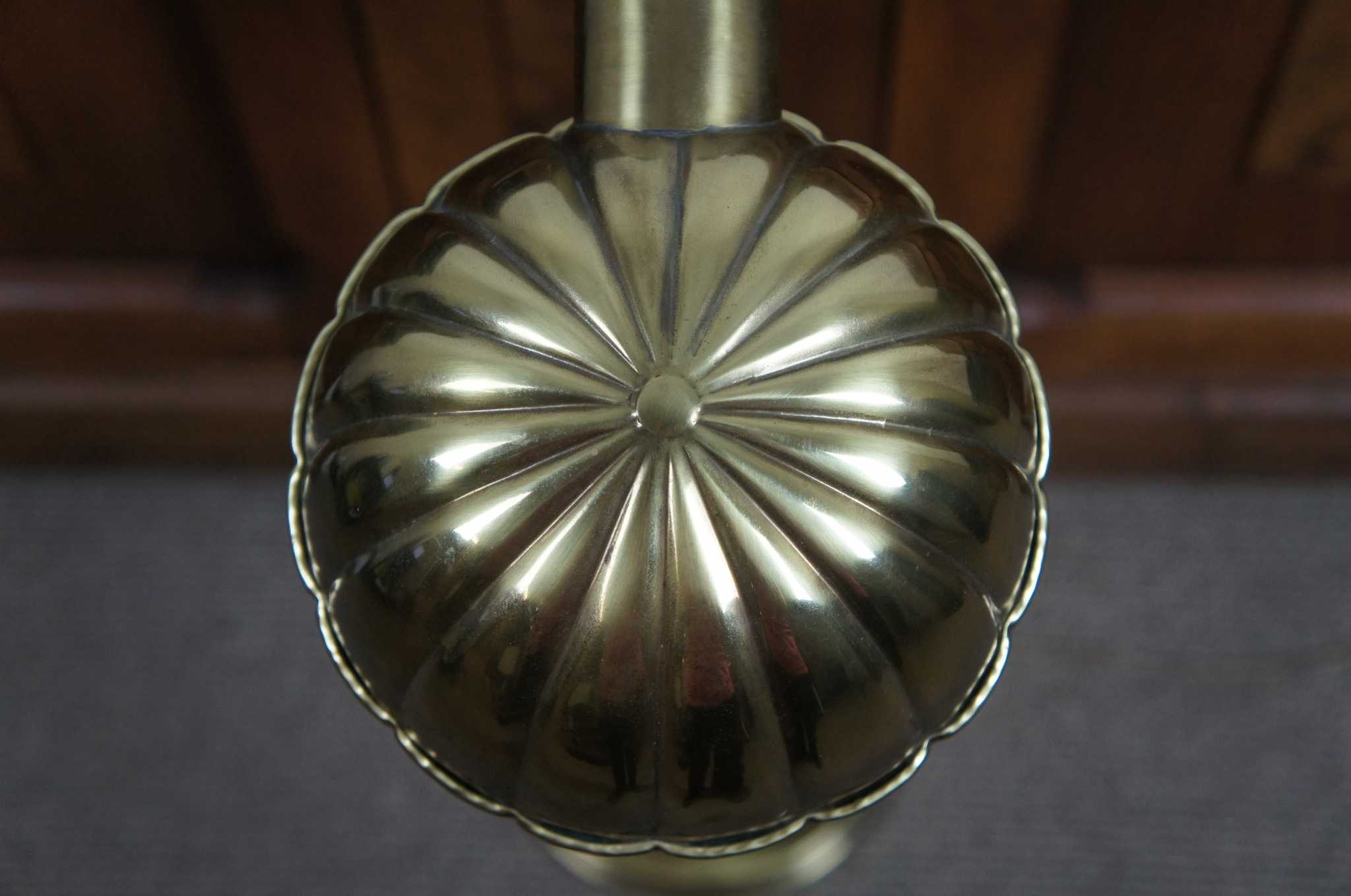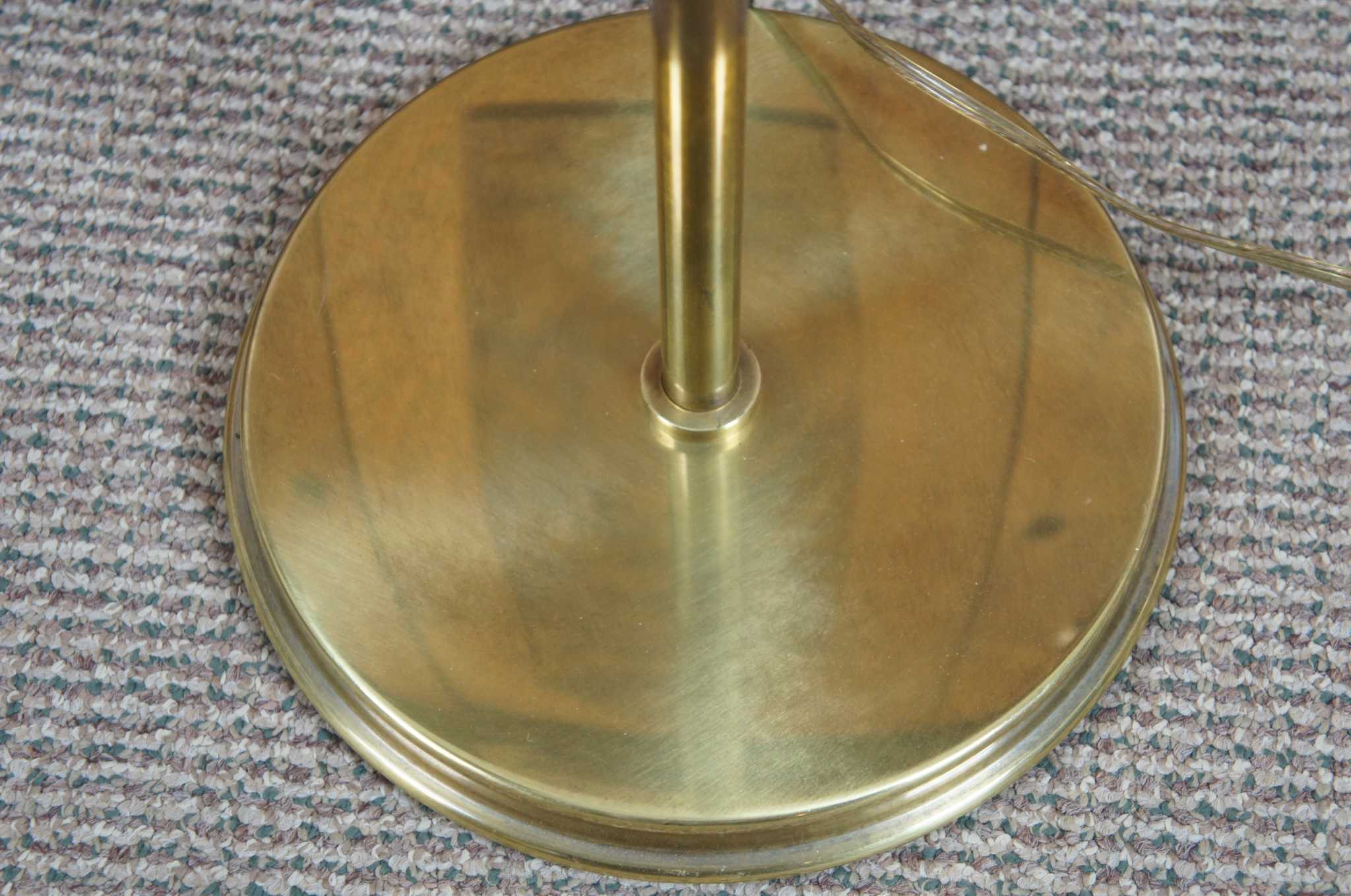 Mid century adjustable brass reading light with dimable scalloped shade.