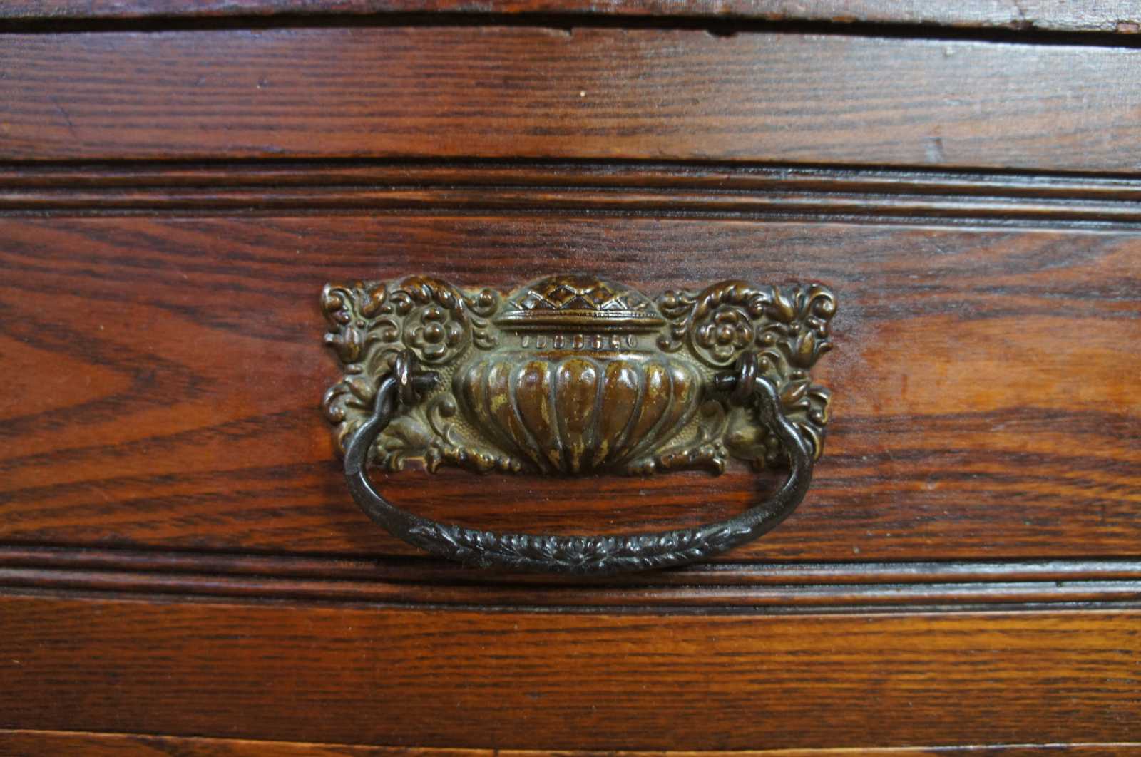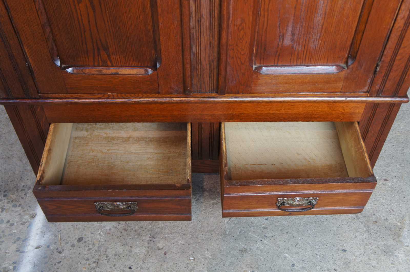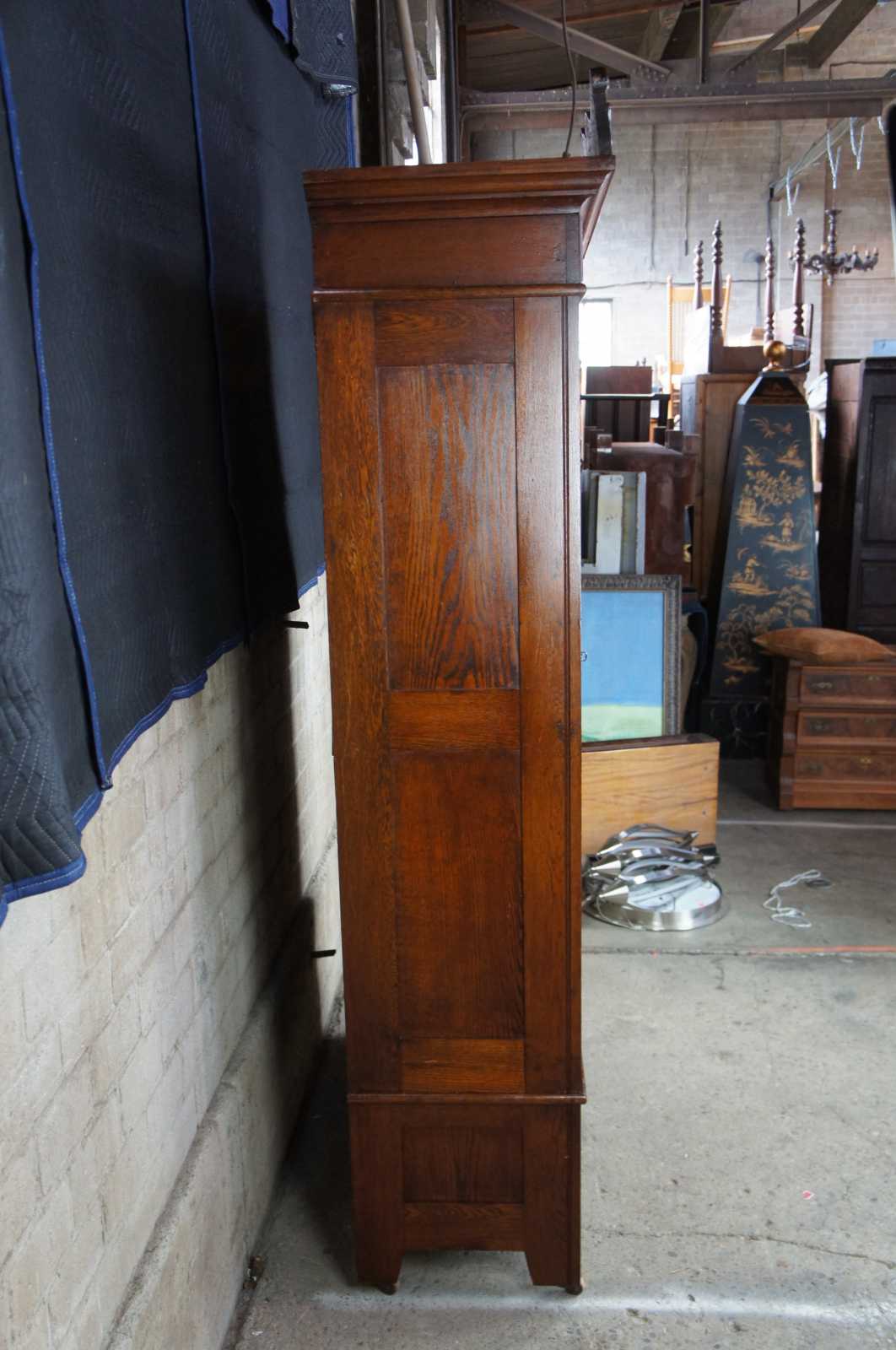 Good overall, use related wear, backing shows glue reside from being moved and repaired in the past, shelves not original.