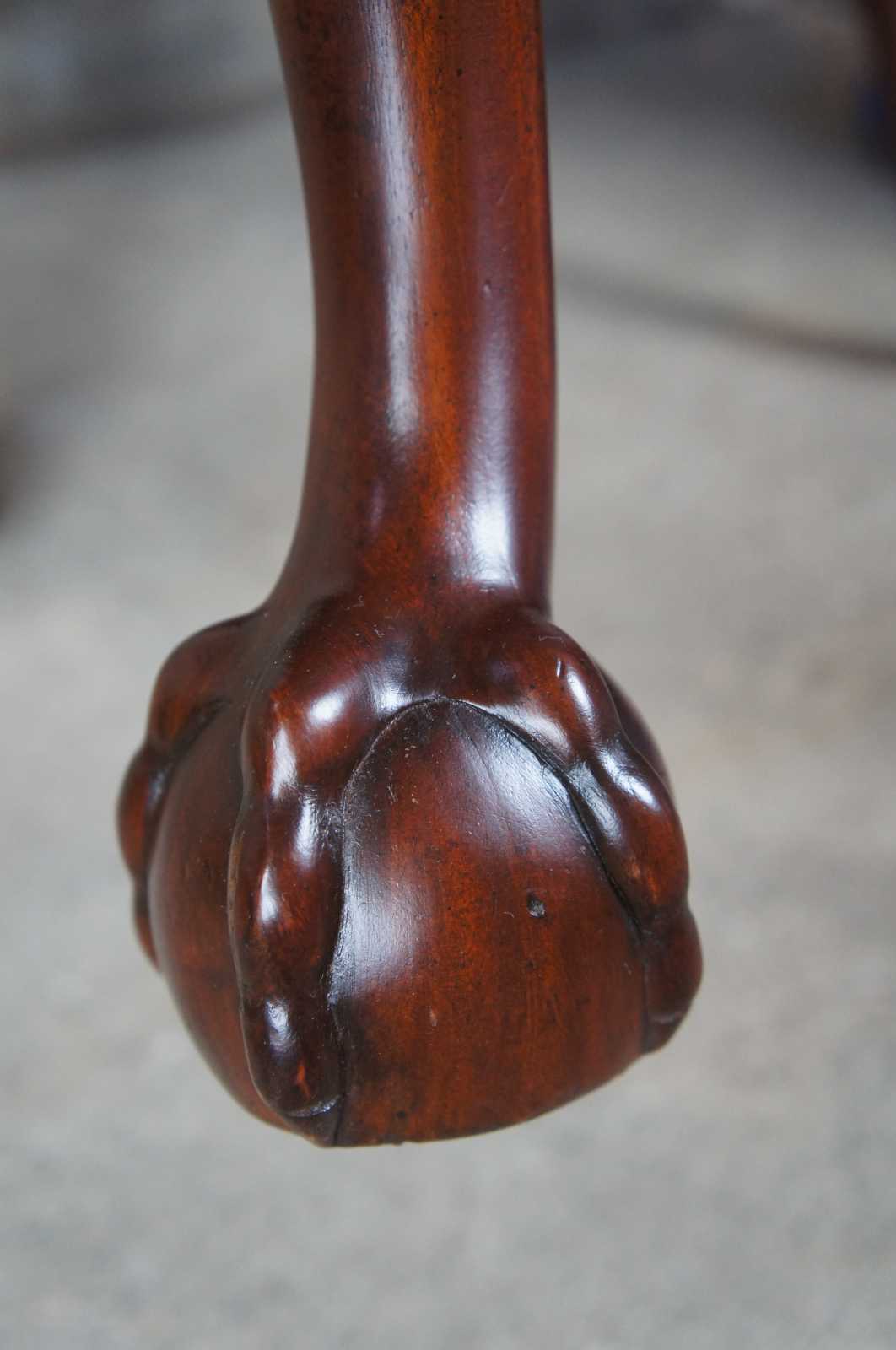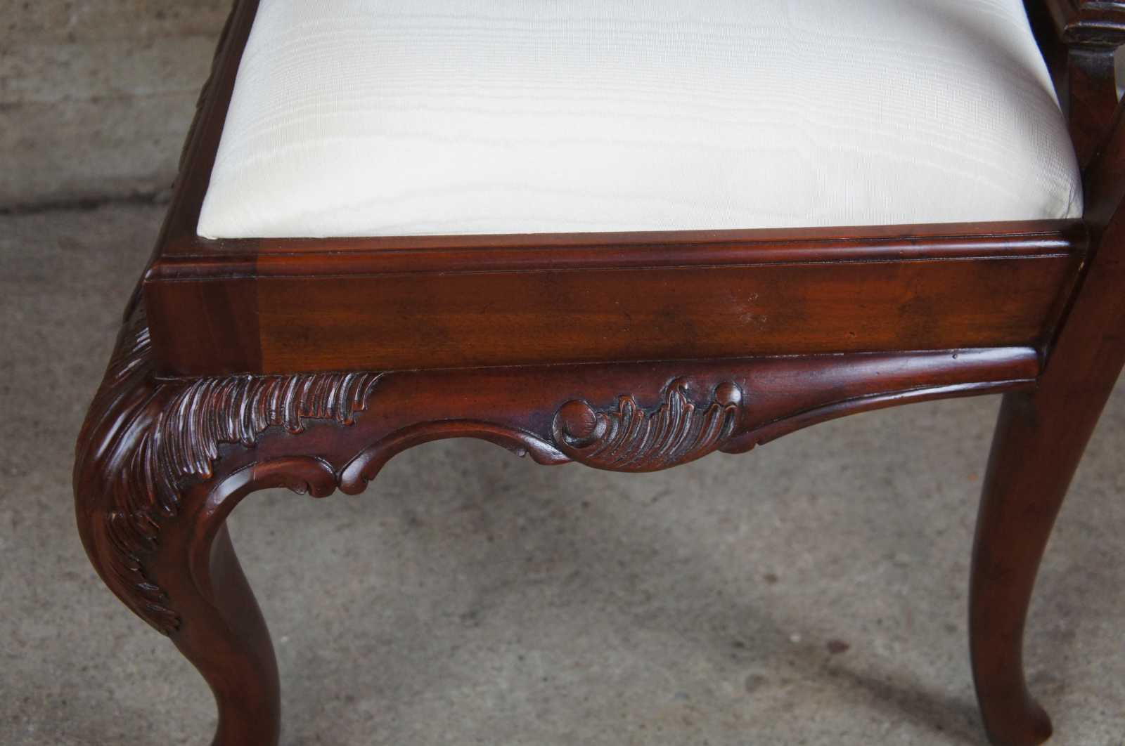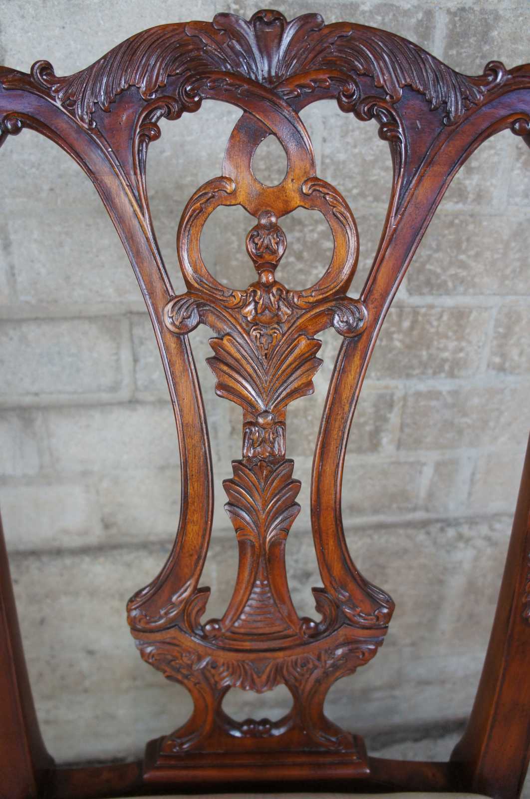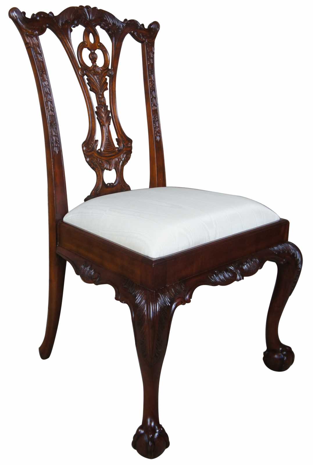 The chair features a hand carved, solid mahogany crest rail, foliate carved back splat, and legs with fully articulated acanthus carvings as well as Chippendale inspired ball and claw feet. For 30 years Maitland-Smith has been in the business of creating exquisite and unique decorative accessories, lighting and accent furniture. Their design roots, however, go much deeper. Antiques from 17th and 18th Century England have always played an important role early in their history; inspiring designs that captured the appearance and quality of the originals. Over time, however, they have found that their designs have evolved and today incorporate style, materials and methods found in many other parts of the world. Today Maitland-Smith is an industry leader well known for its world-class quality and innovative design. Their areas of expertise include metal casting, finely executed porcelains, sophisticated finishing techniques, detailed hand painting, beautiful inlaid marquetry and the finest hand carved woodwork. Leather, penshell and eggshell are just a few of the multitude of materials that are used to create Maitland-Smith treasures. At Maitland-Smith, they take great pride in the quality of their materials and the highly skilled artisans who fashion these unique pieces each year in their company-owned workshops