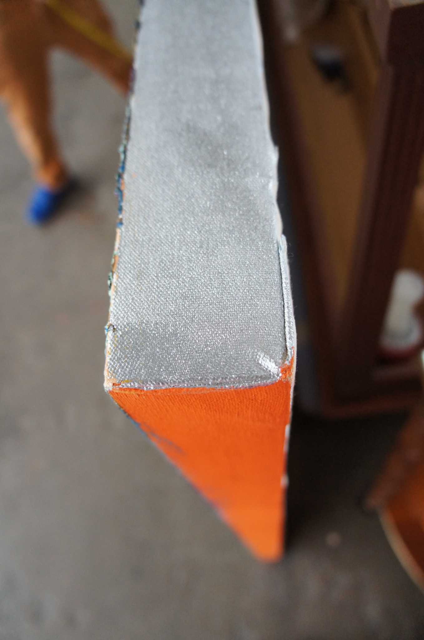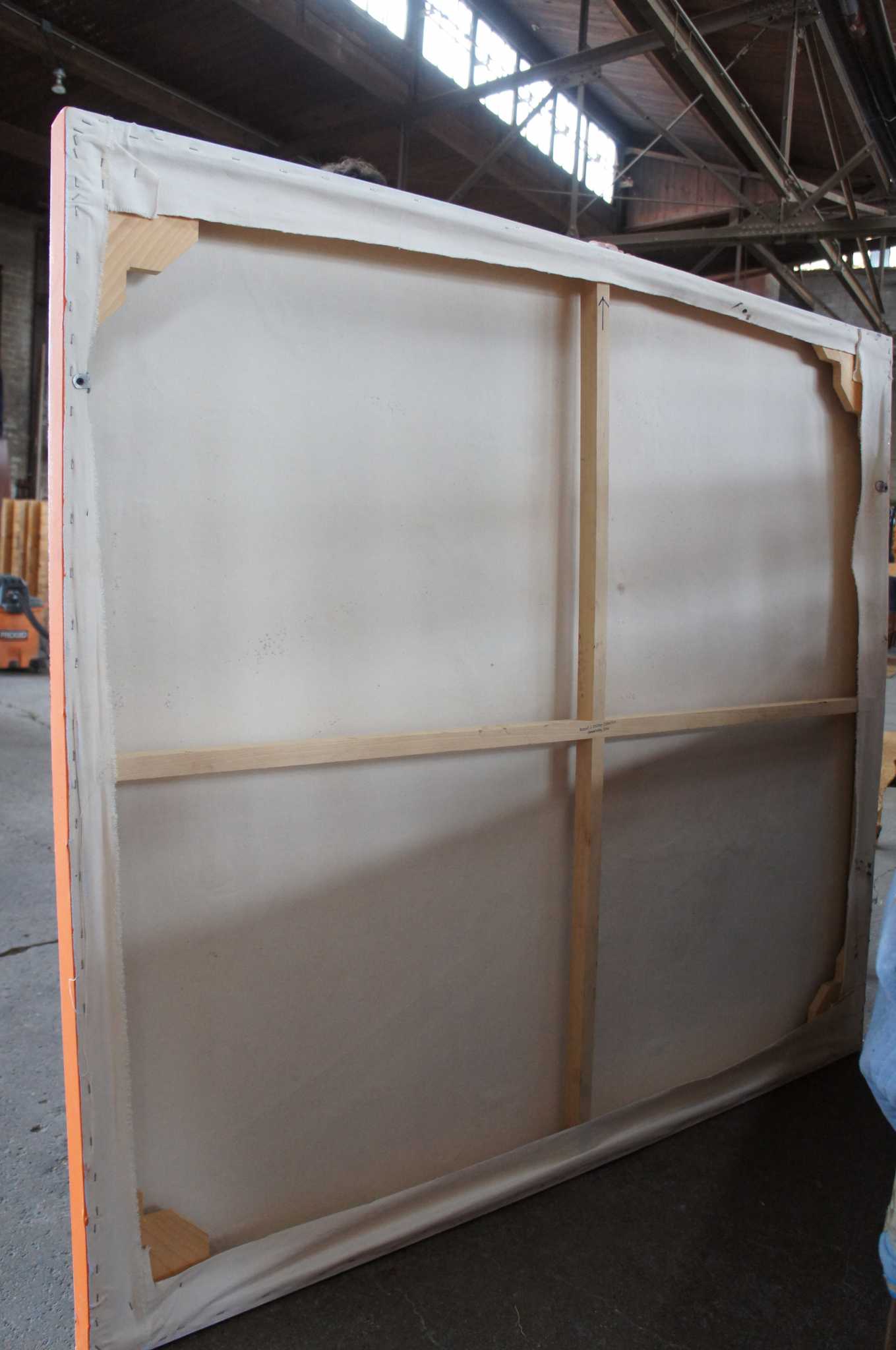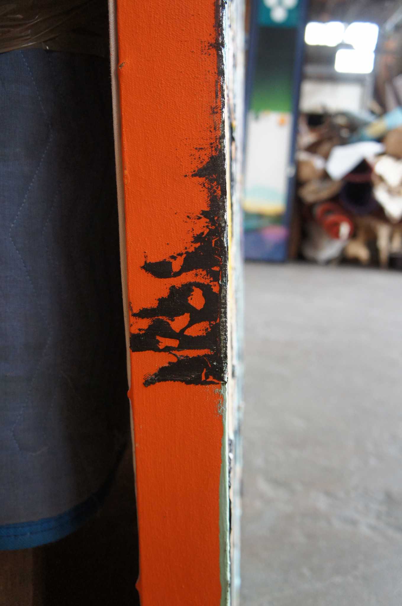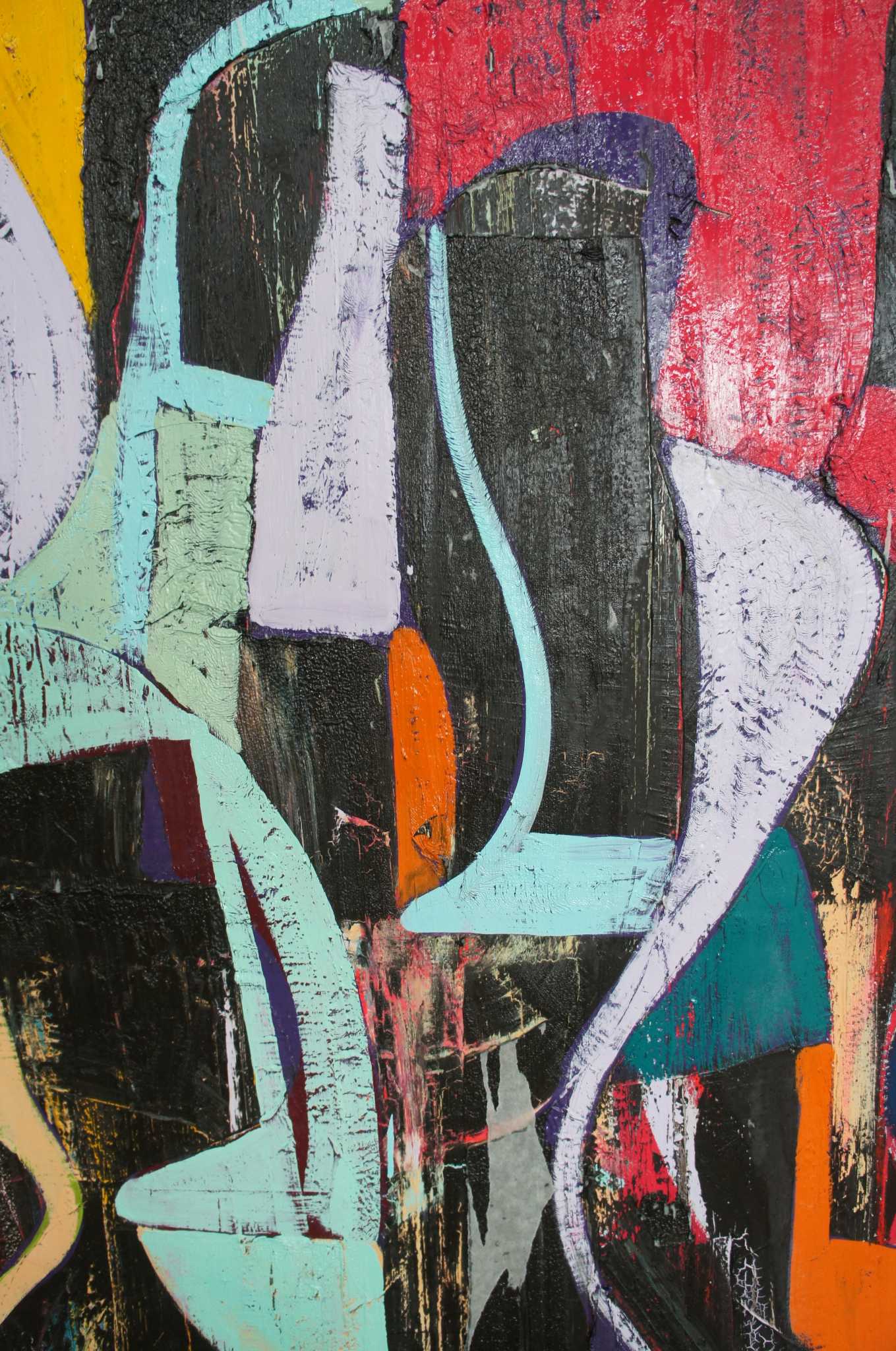 Large abstract modern expressionist painting by Jason Fascination. Painted in acrylic with a colorful mixture of vibrant shades. Canvas mounted to wood frame, painted on sides.