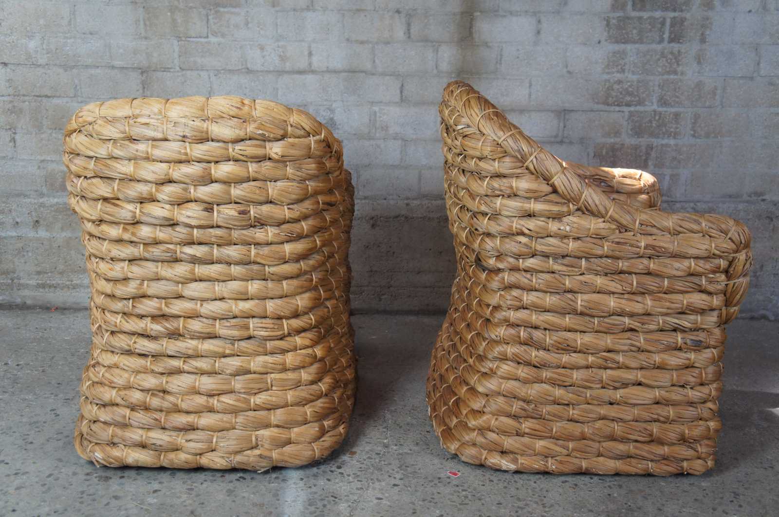 2 Ralph Lauren Joshua Tree Chairs. Full of hearty texture and visual appeal, these cabana-style armchairs are crafted with natural lampakanay and fitted with a plush cushion upholstered in a white linen.