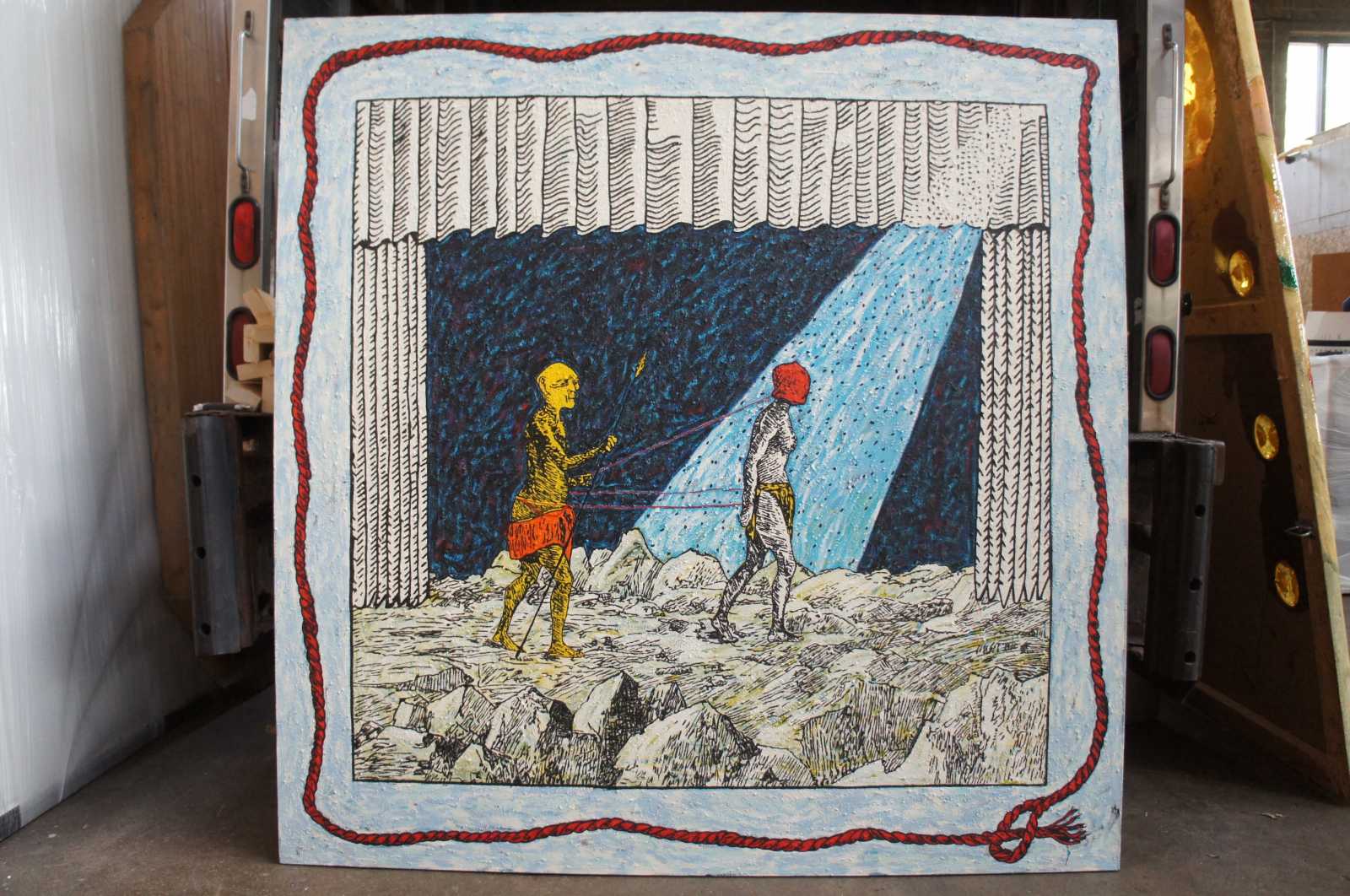 Jane Hammond is an accomplished painter, sculptor, and printmaker living and working in New York. Her work typically includes images pulled from a wide range of sources, including illustrations for children’s books, technical manuals, and esoteric tomes. Hammond has acknowledged that text and literary elements are important to her work and she has previously collaborated with poets for titles and for source material. Poet John Ashbery devised titles for a series of works made in 1993 and ’94. In 2004, she collaborated with poet Raphael Rubinstein for a sculpture at the Whitney Museum of American Art, called Fallen. Displayed as a field of autumnal leaves spread across a low plinth, the work is composed of thousands of handmade leaves printed by Hammond, each inscribed with the name of a soldier killed in the Iraq War.
