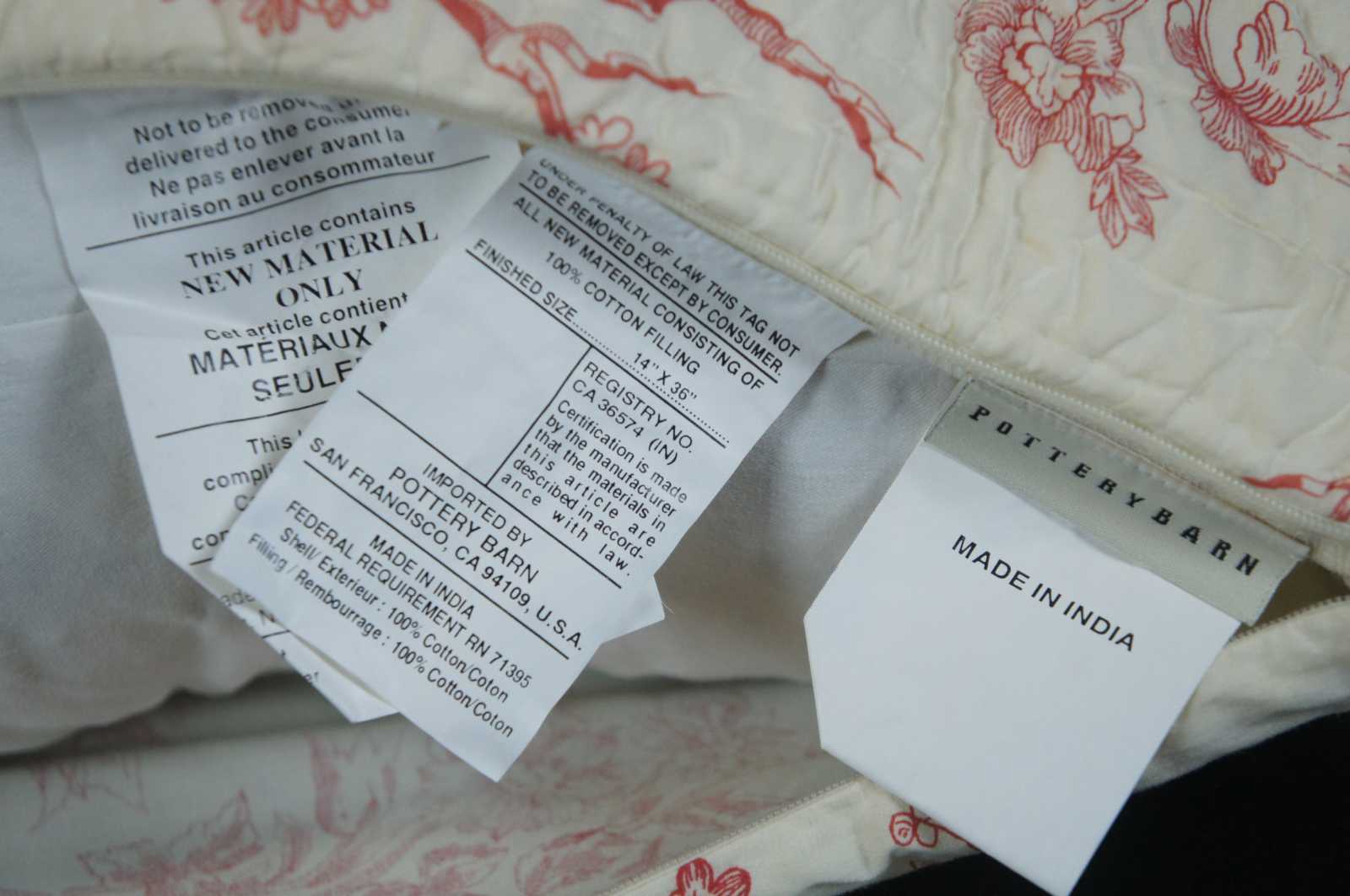 Down filled lumbar support or accent pillow with two Pottery Barn covers – quilted red & white floral tole and red striped burlap.