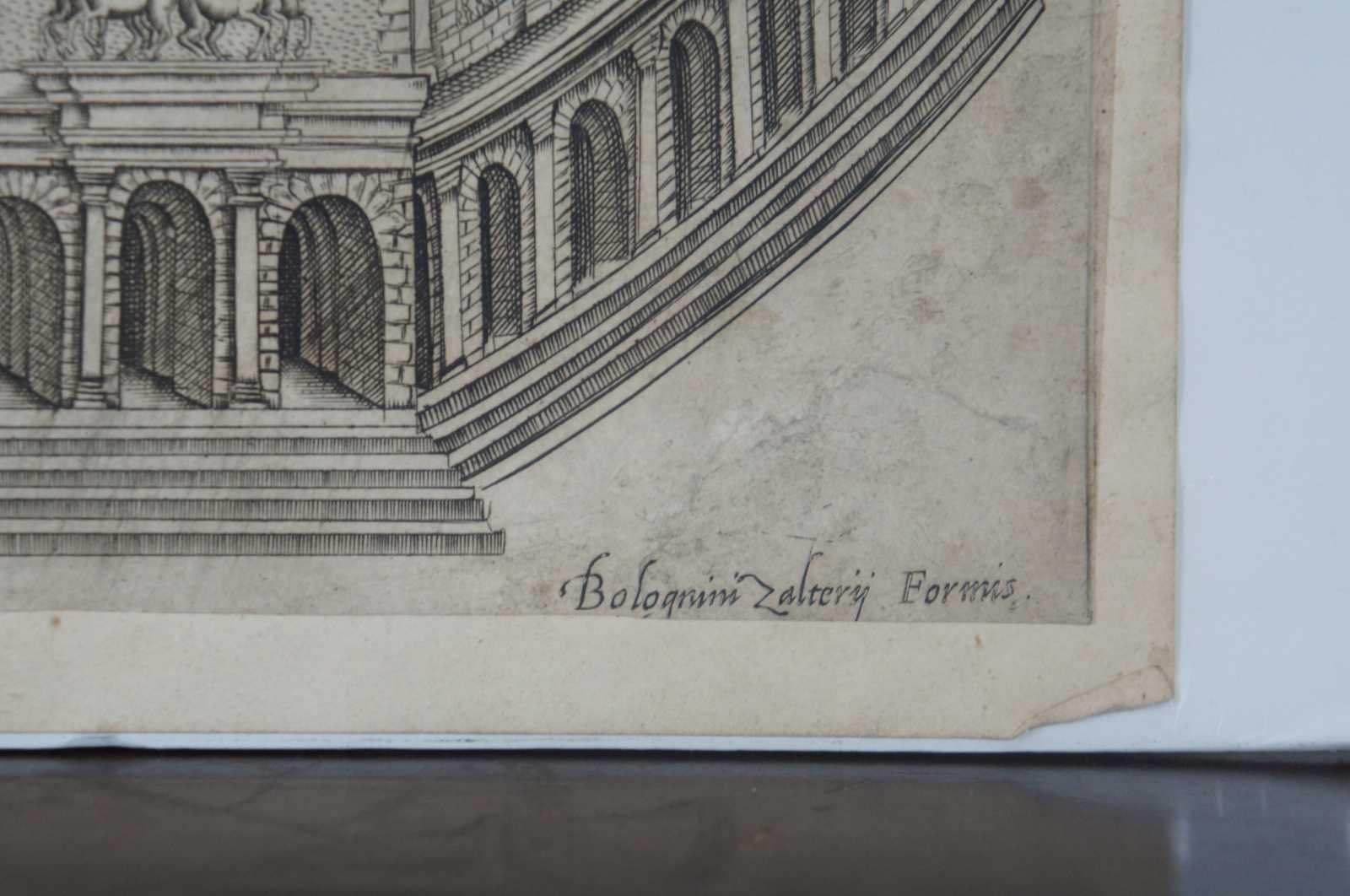 Antoine Lafréry (also known by the Italian name Antonio Lafreri) was a French printseller and publisher, and possibly also an engraver, who moved to Italy and was active in Rome from around 1540 until his death in 1577. His firm published maps and a wide range of prints: ancient and modern Rome, portraits, ornament and mythological, historical and religious subjects. He also bought and sold drawings, coins and medals. Among Lafréry’s publications were two architectural treatises and several sets of ornament prints, including Speculum Romanae Magnificentiae (c. 1540-c.1565). According to the subtitle of Speculum, it had the most accurately drawn representations of nearly all the extant monuments of the City of Rome; in the 1570s, the Lafréry catalogue listed some 500 subjects. Engraving depicting chariot racers in the Circus Maximus, after a painting by the eminent Italian architect and antiquarian Pirro Ligorio. According to the caption, the artist intended to show this Roman stadium as it appeared in antiquity. This engraving was originally published by Michele Tramezzino in 1553, and bears his monogram. Architectural, Italy, Speculum Romanae, Circus Maximus, Rome, Antique Print.