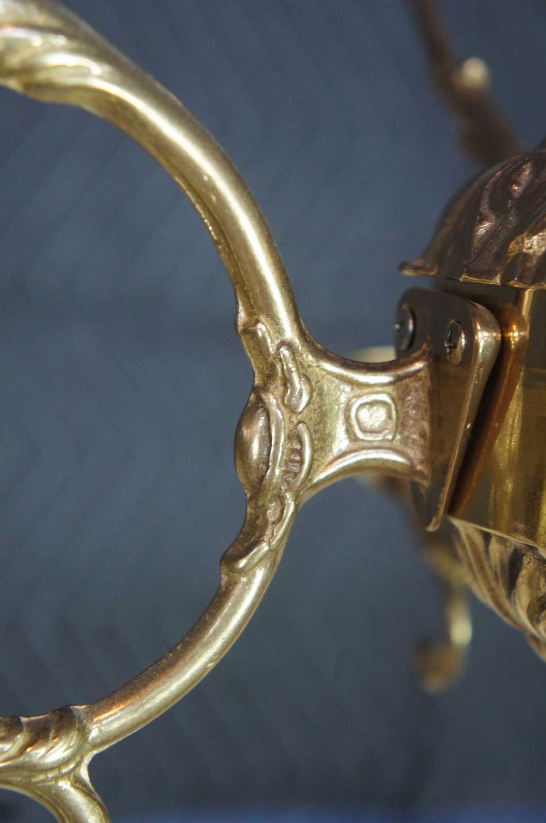 Mid 20th century Hollywood Regency style hall tree. Made from brass with figural lion head base leading to paw feet. Ornate revolving top has scalloped coat hangers.