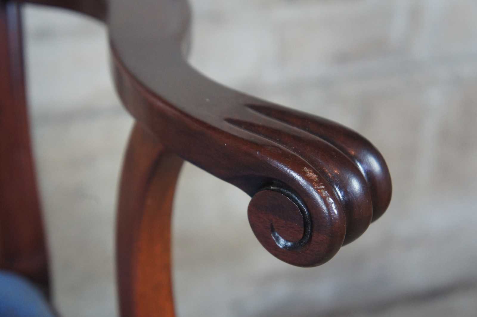 Carved crest rail and carved pierced interlaced back splat. Slightly incurved double beaded shaped back post.