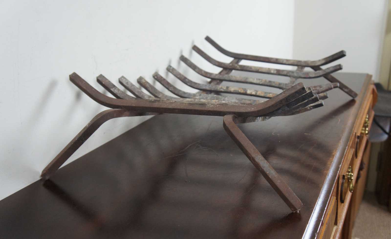 Antique cast iron fireplace grate / basket / cradle / holder. Made to be inserted into fireplace for logs to be burned or could also be used to hold pre-kindled logs. Came from one of the first homes in Oakwood Ohio.