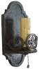 Antique early 20th century hammered iron sconce with fleur de lis scroll work and twisted iron accent. Includes candle cover and pull switch. Comes from one of the first homes built in Oakwood, Ohio by Harry I Schenck.