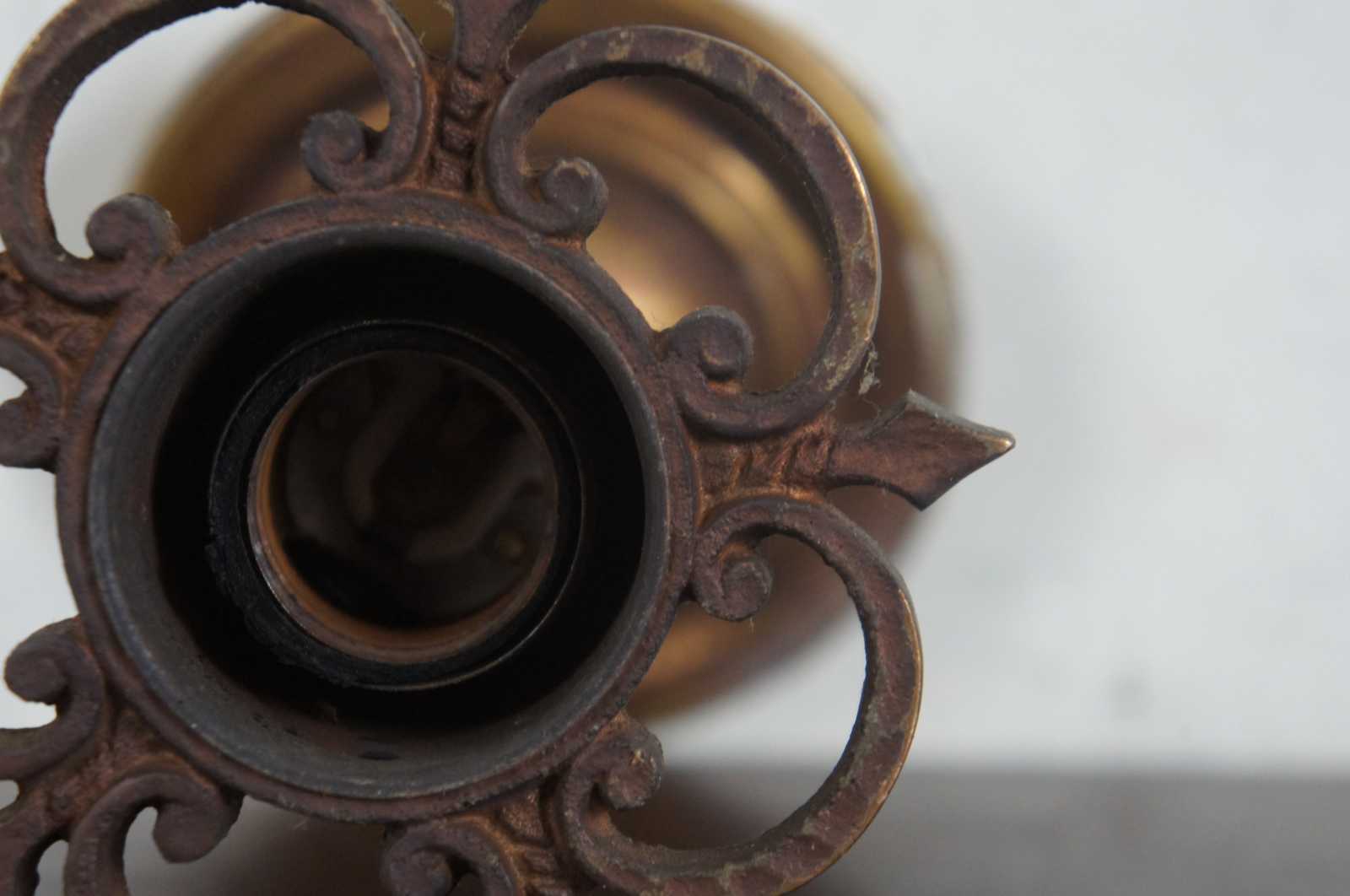 Antique French cast iron ceiling pendant light. Comes from one of the first homes built in Oakwood, Ohio by Harry I Schenck.