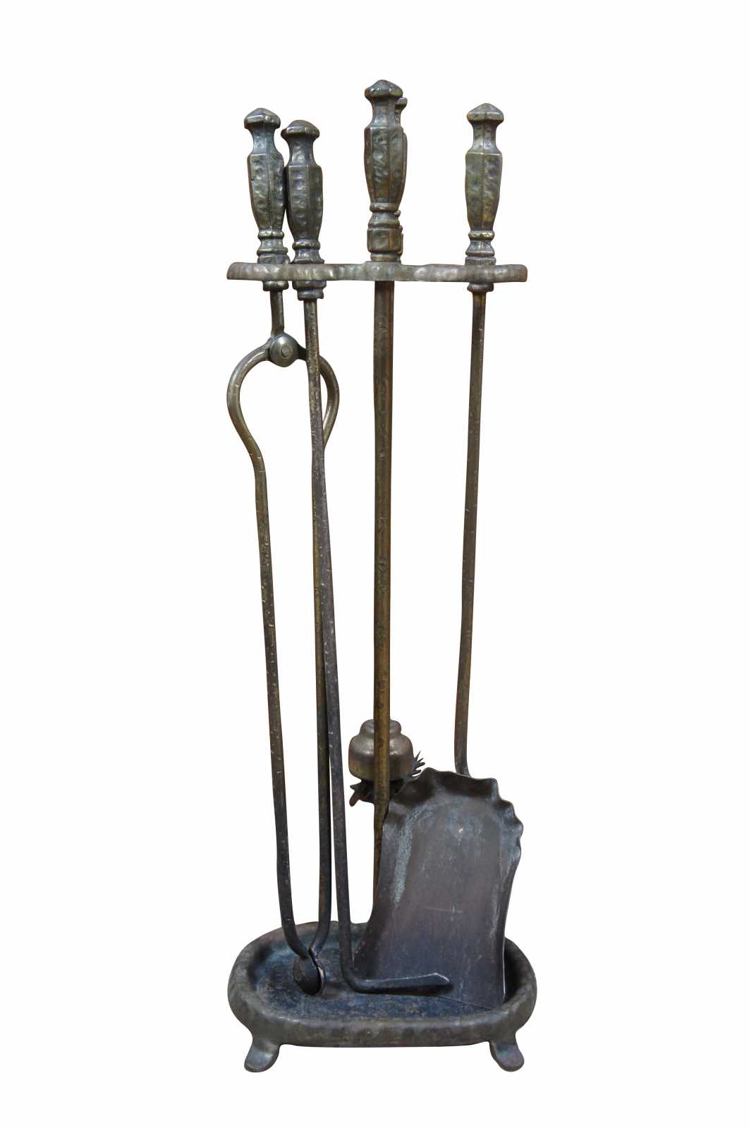 Antique Victorian fireplace set. Features hammered bronze and iron.