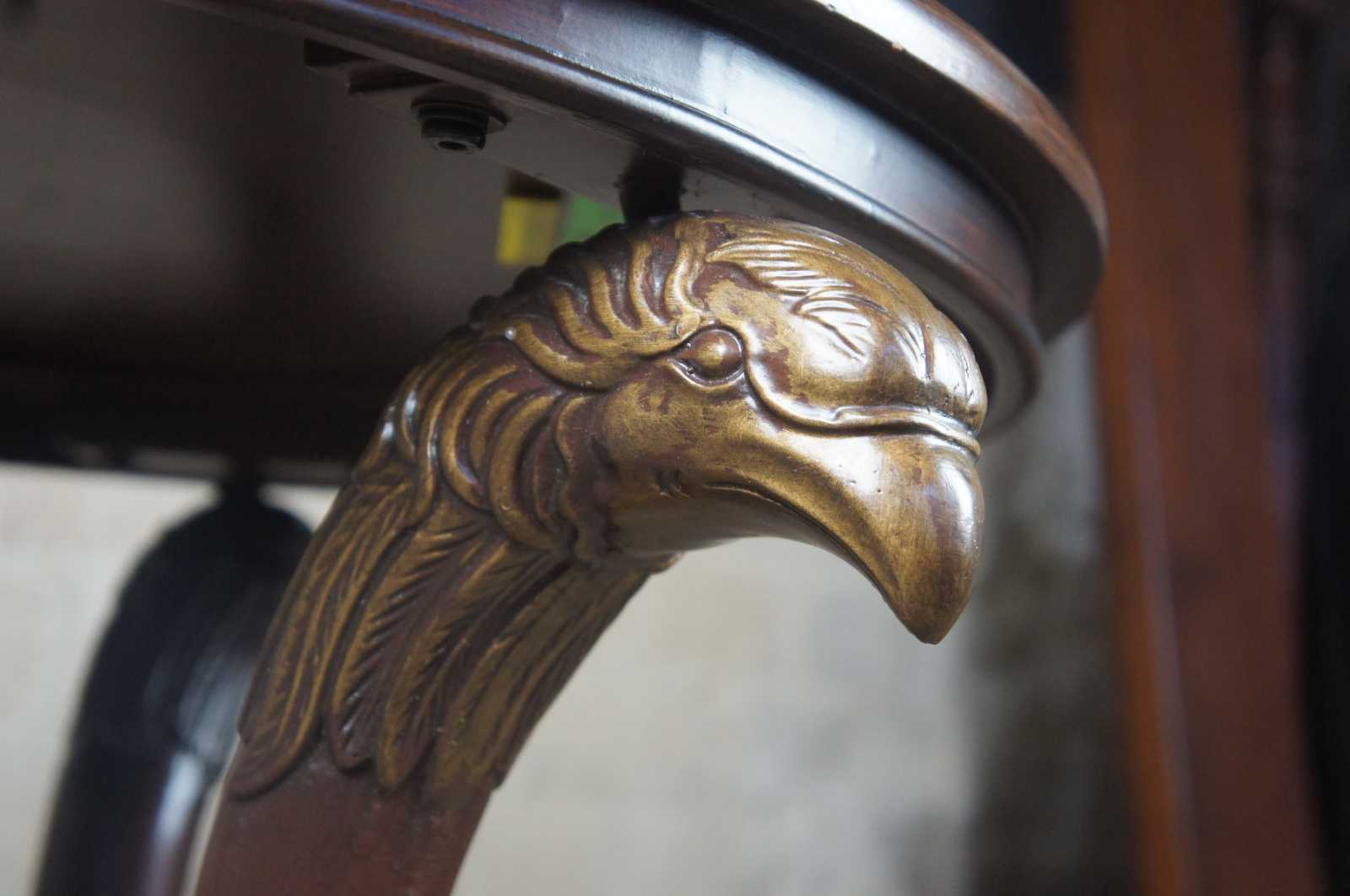 Round figural eagle head and paw foot cherry finish table by Powell. Circa 2009.