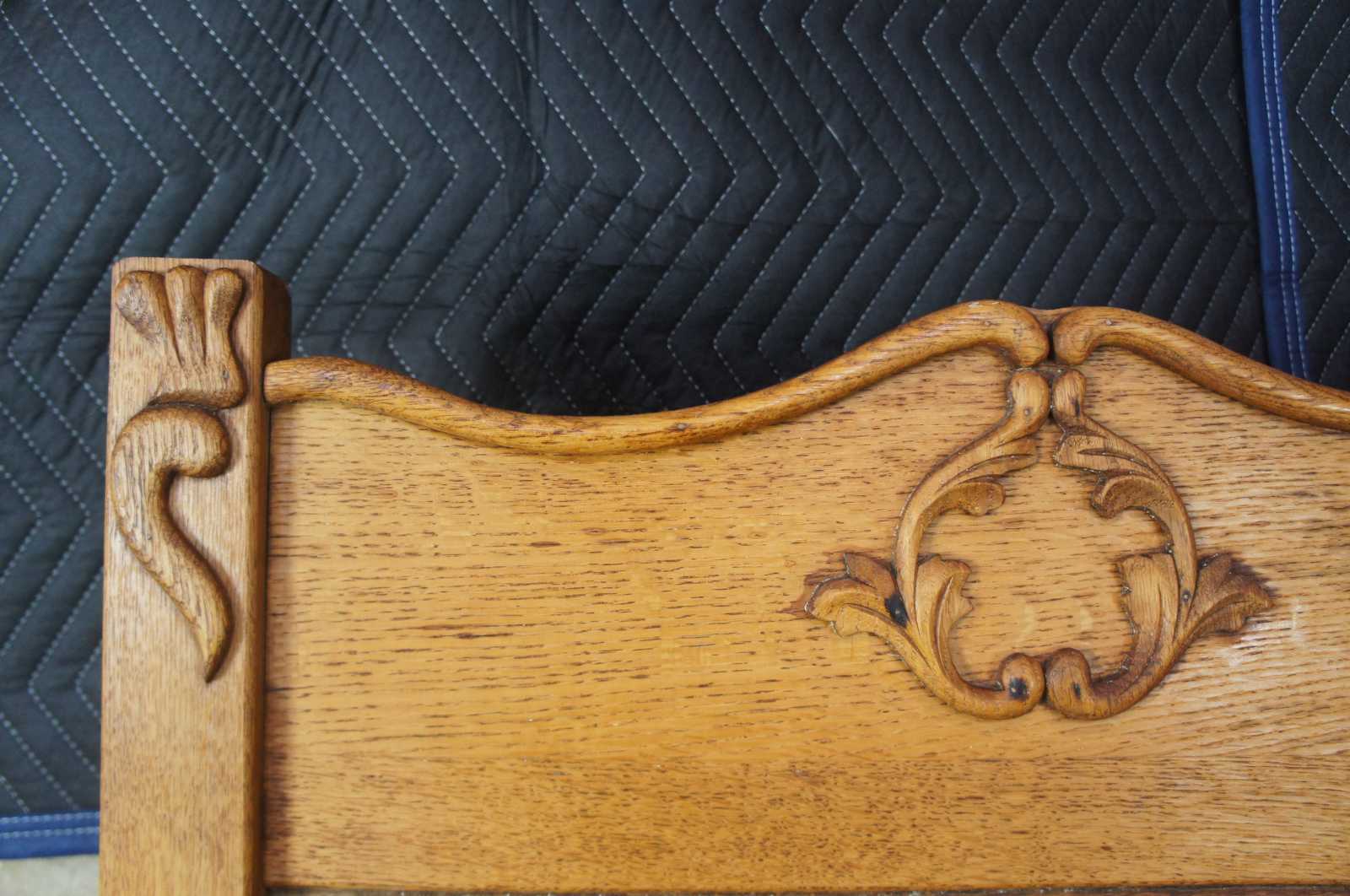 A beautiful Victorian era highback panel bed. Made from oak with a serpentine back with scalloped design and acanthus accents.