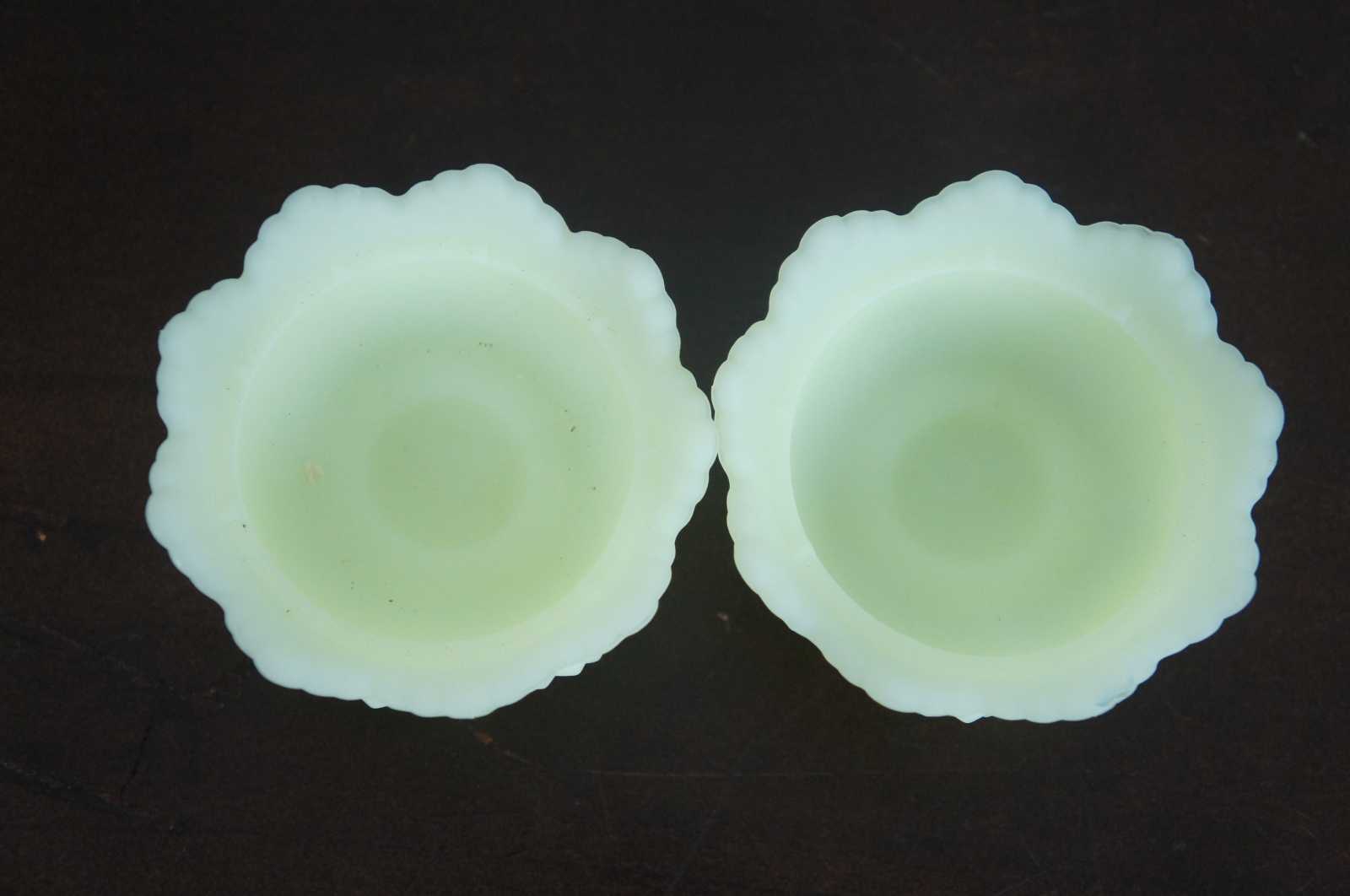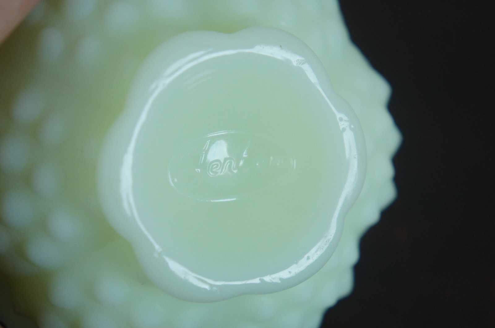 Fenton hobnail satin / uranium glass candle or votive holders.