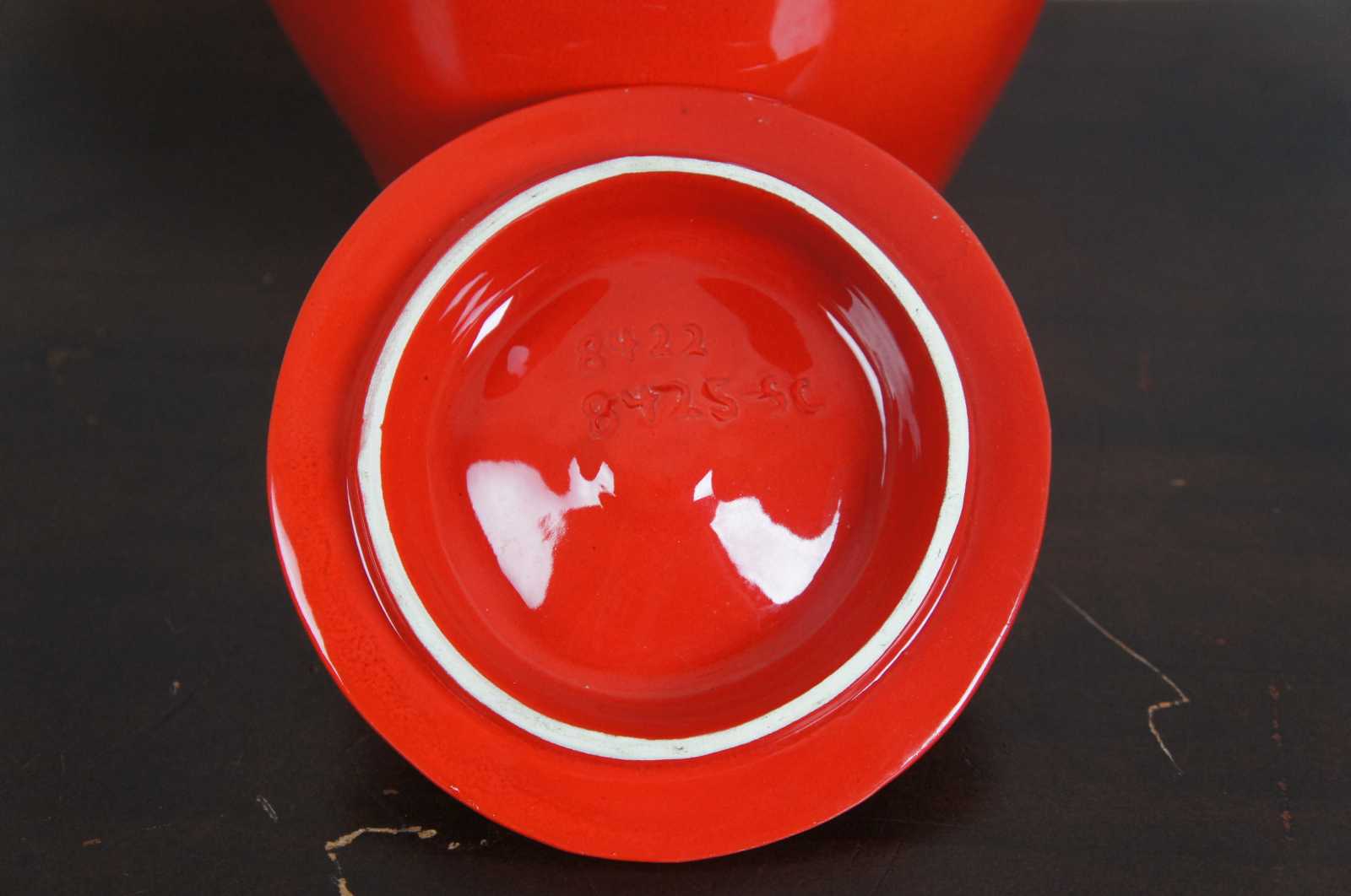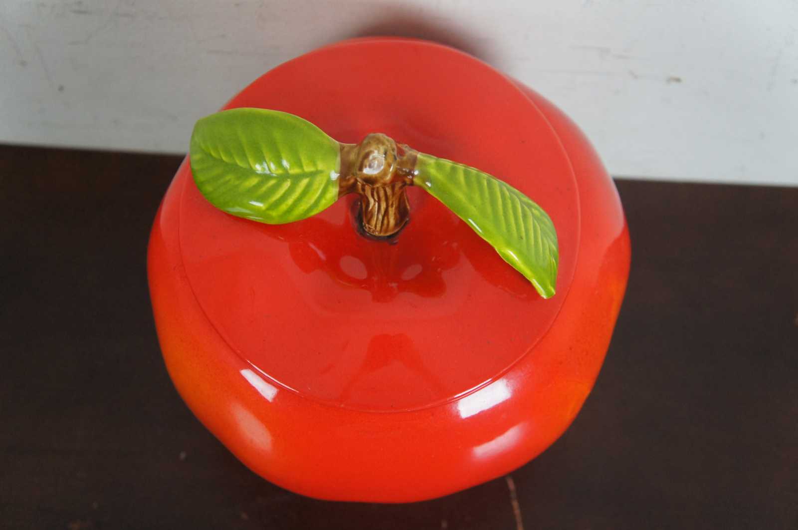 Red delicious apple cookie jar by SCT. Marked 8422 8425-SC on base.