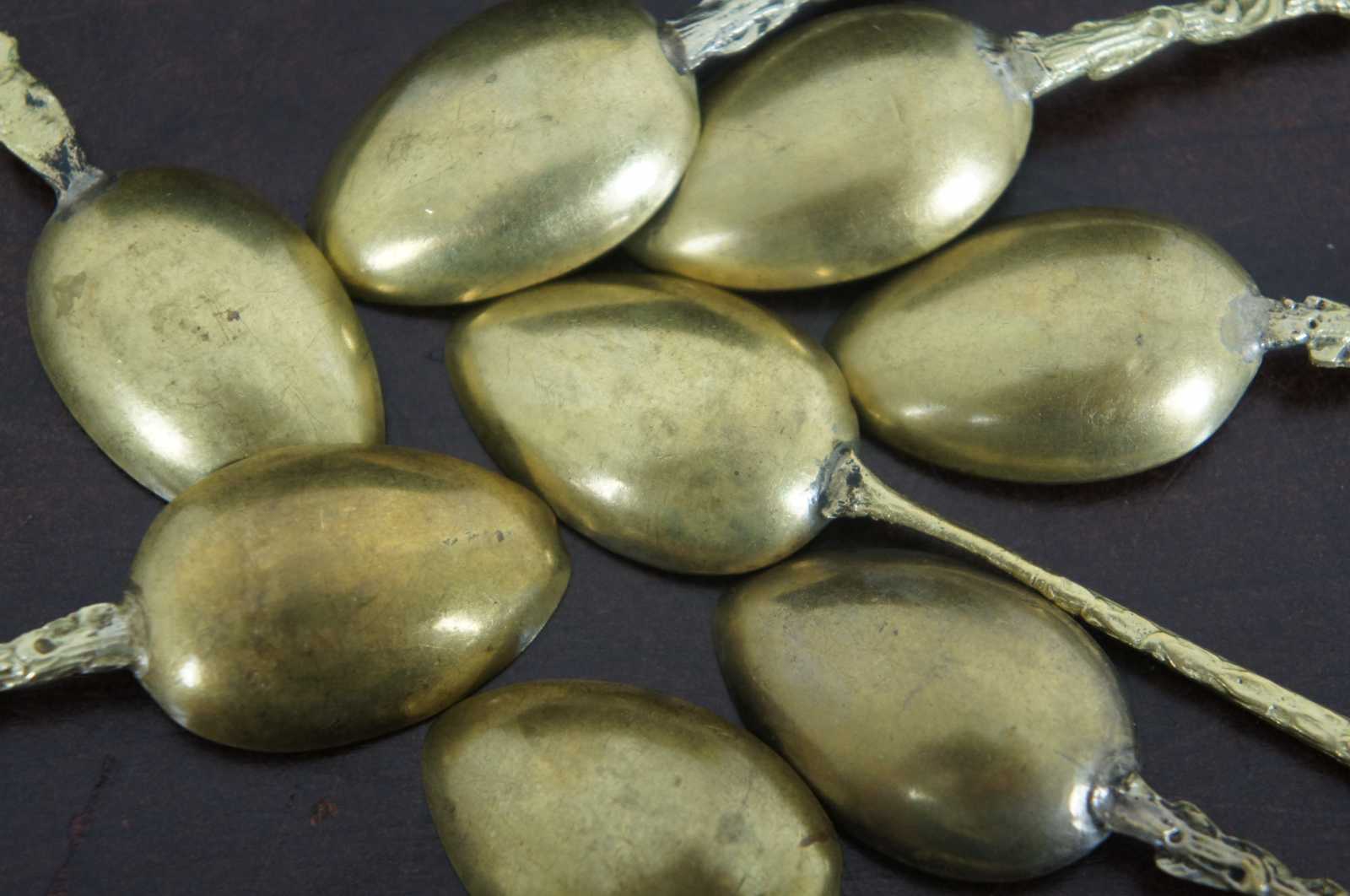 Set of 8 Italian Brass Florentine Souvenir Tea Spoons Charms Italy 5.5"