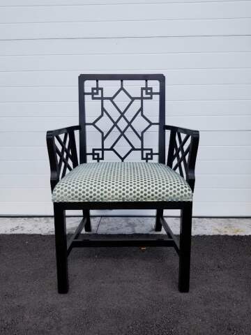 Antique French Directoire Style Mahogany Dining Arm Desk Chair Needlepoint Seat
