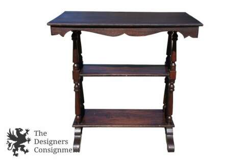 Beautiful Vintage 3 Tier Shelved Pine Living Room Console Table With Turned Legs