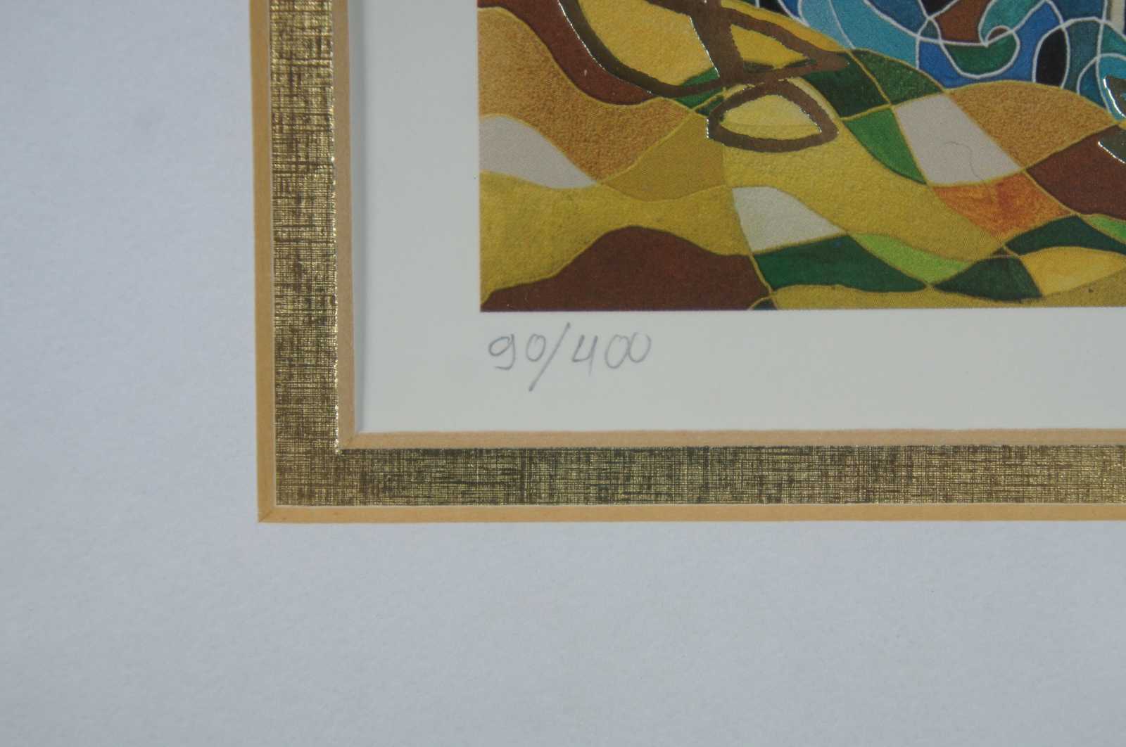 Golden City / Tower of Babel pencil signed and numbered lithograph print by ILAN Hasson. Circa 1989, Edition 90/400. Ilan Hasson was born on a Moshav in central Israel. He began his artistic career at the age of sixteen,at the Avni art school in Tel Aviv, where he graduated with honors. He continued his studies at the Tel – Chai school of art in the Gallilee. Ilan Hasson's artistic themes are based on Judaikah and influenced by traditional Jewish art and paper craft such as- Ktubas and Jewish books decorations , especially the Passover's Hagada. Themes from the bible, the Talmud and the Kabala are painted in a fantastic and colorful way: The Garden of Eden , Creation , The Tree of Life, Jerusalem City of Peace, The Tower of Babel, are all themes in Ilan Hassons art.