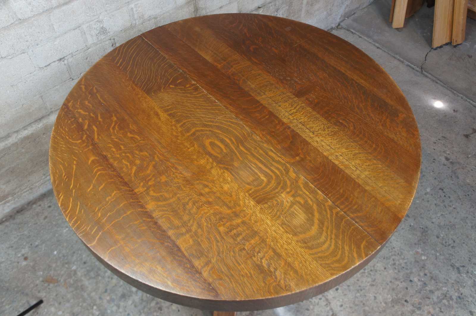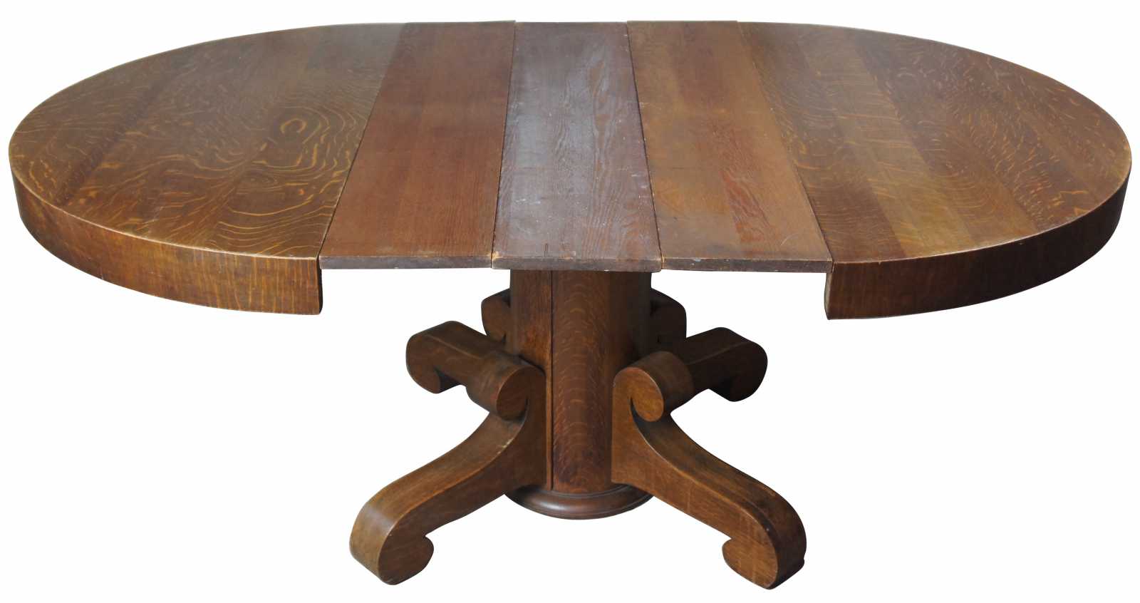 Late Victorian Empire inspired dining table from National Furniture Company. Crica 1900s. Made from quartersawn oak with scrolled feet. Includes 3 leafs for extension and casters. National Furniture Company was based out of of Jamestown, New York and operated from 1890-1938. They specialized in the manufacture of high end furniture and later became Union National in 1939.