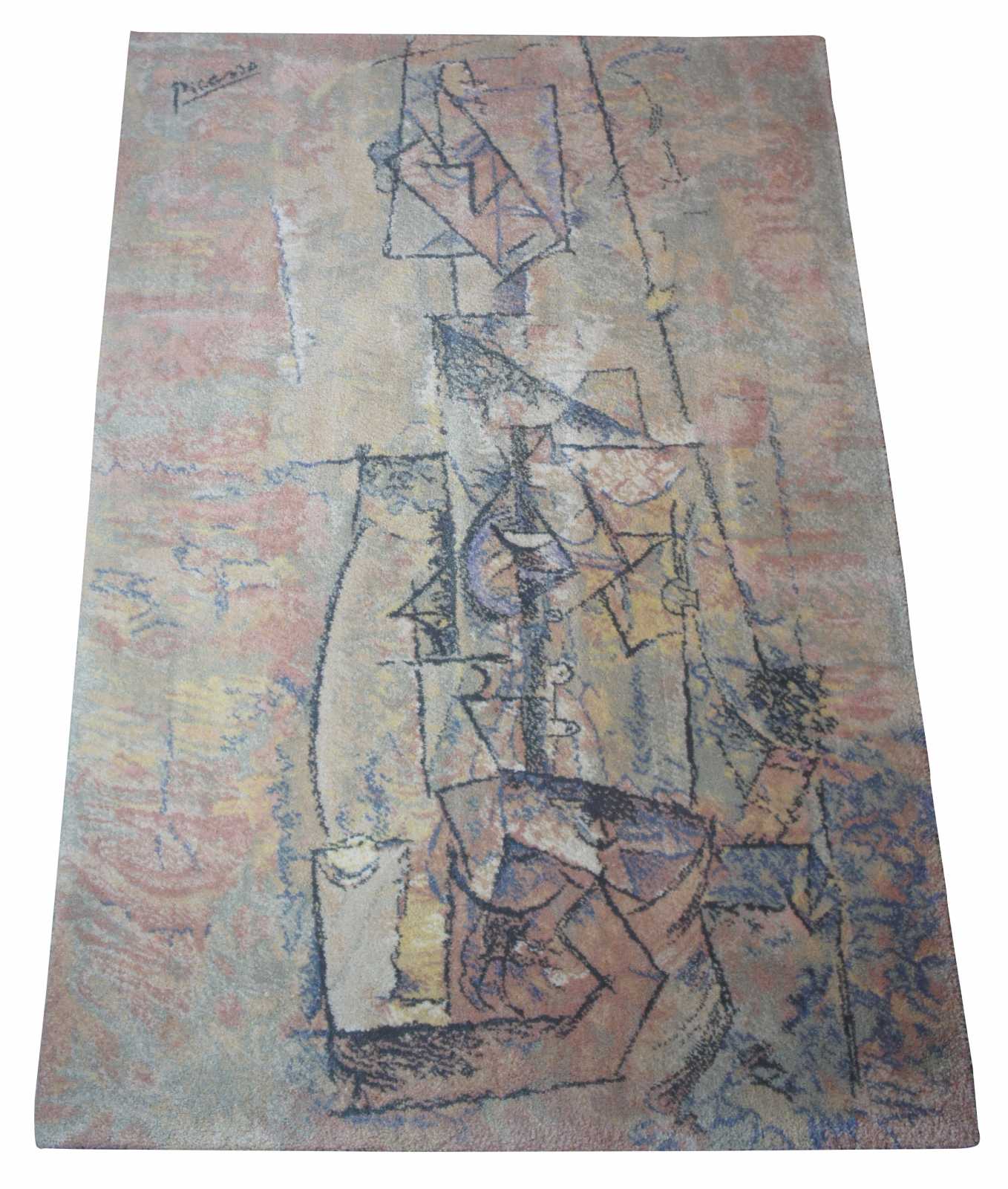 A very rare rug from the 20th century masters collection by the Scandinavian Company EGE. The Art Line Collection with motives from Pablo Picasso was commissioned by his daughter. The collection was made in 1994 in a limited number of 600 pieces. Homage to Pablo Picassos "Woman with a Guitar" Circa 1910. The design number is 80576 / #511 of 600, made in Denmark. 4'7" x 6'7".