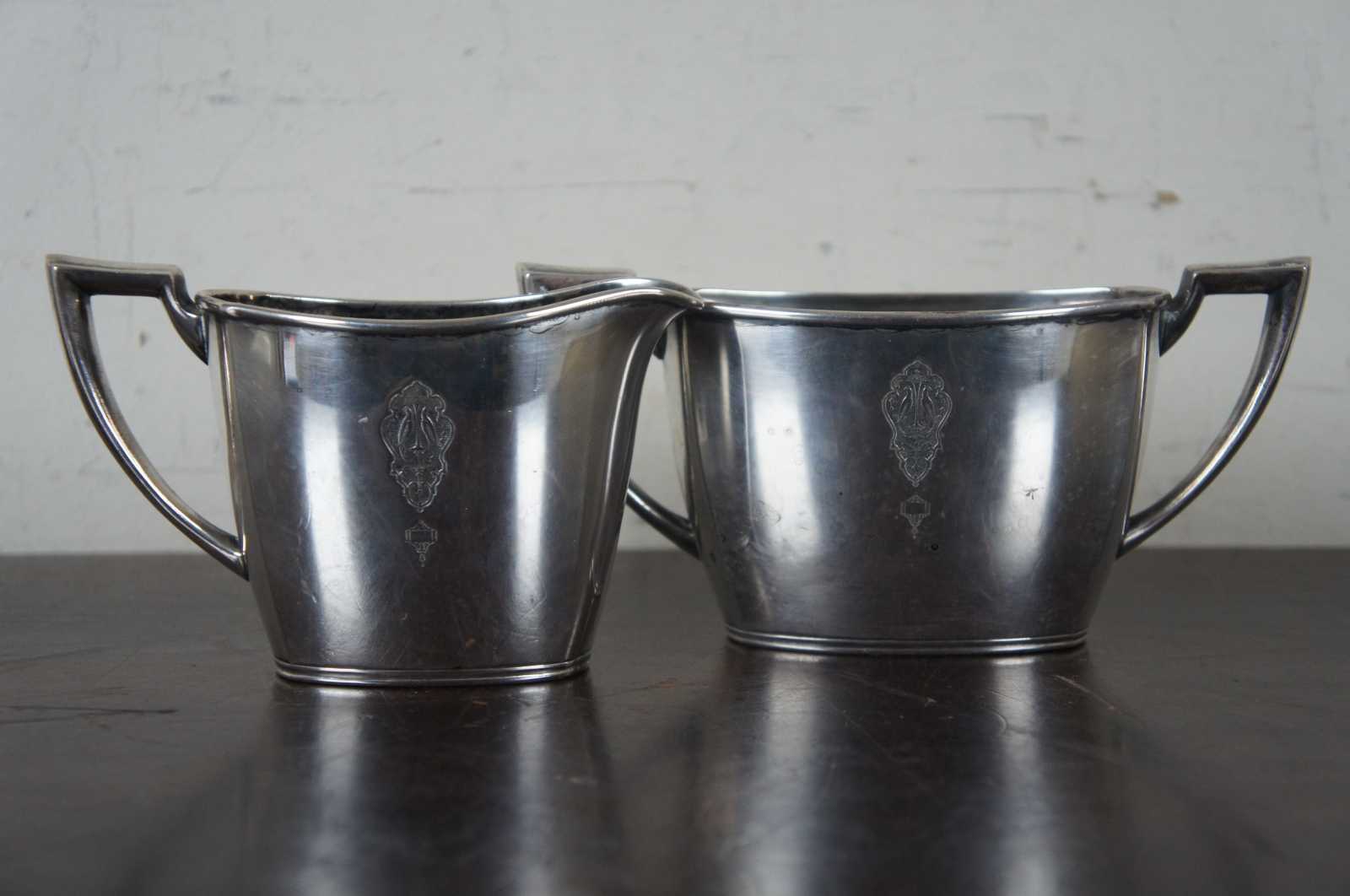 Oneida Community silver plated bird of paradise hollowware creamer and sugar bowl set.