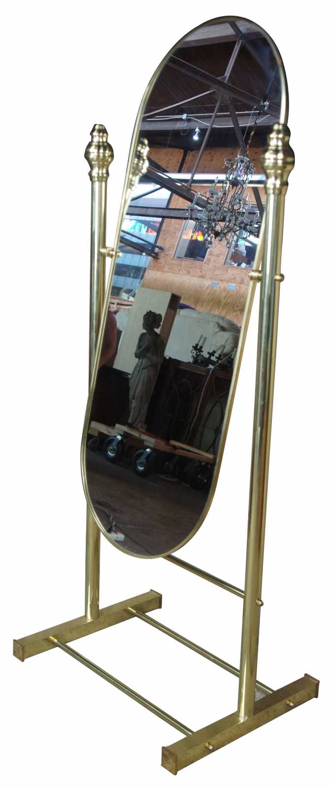 Vintage 1970s Hollywood Regency brass Cheval mirror.